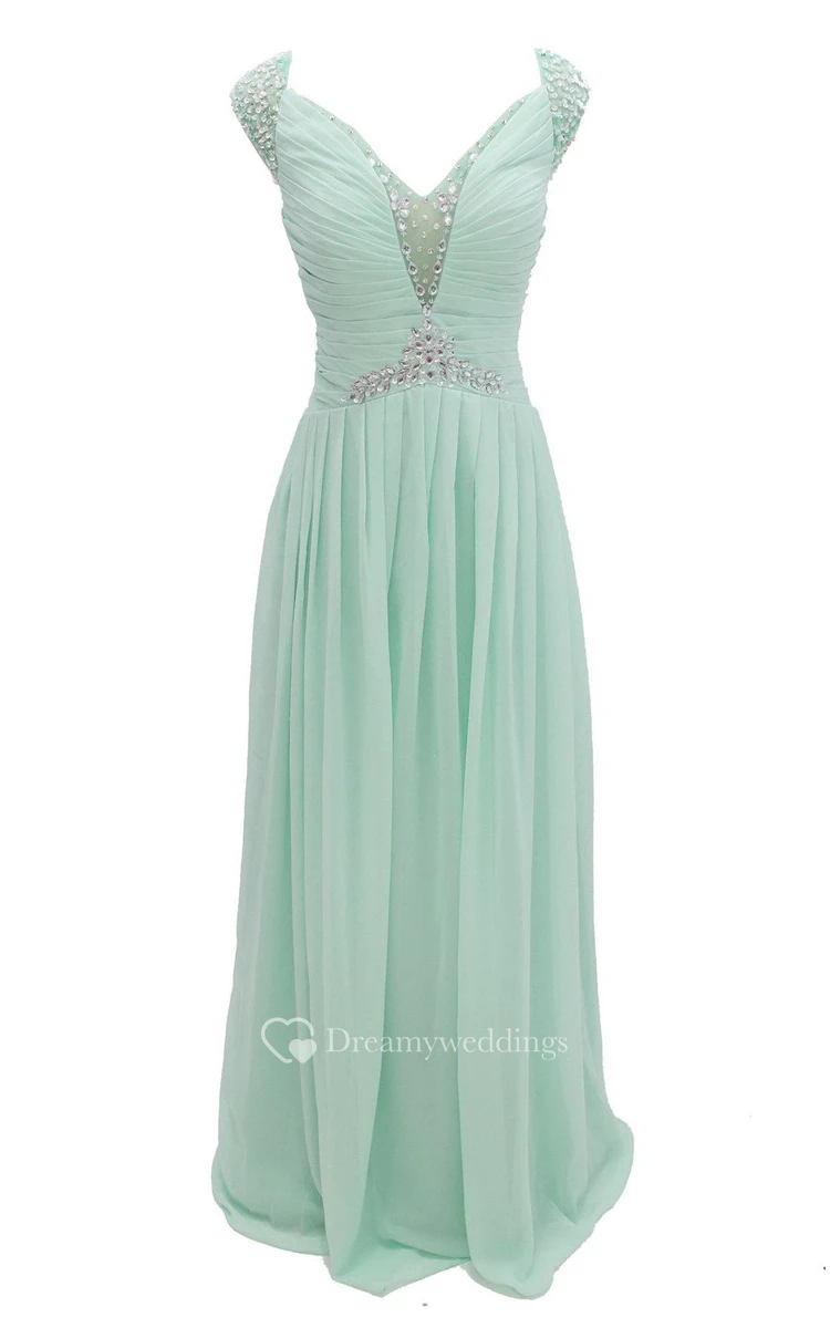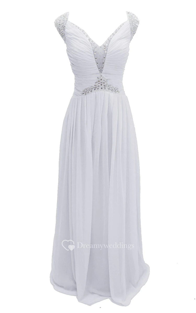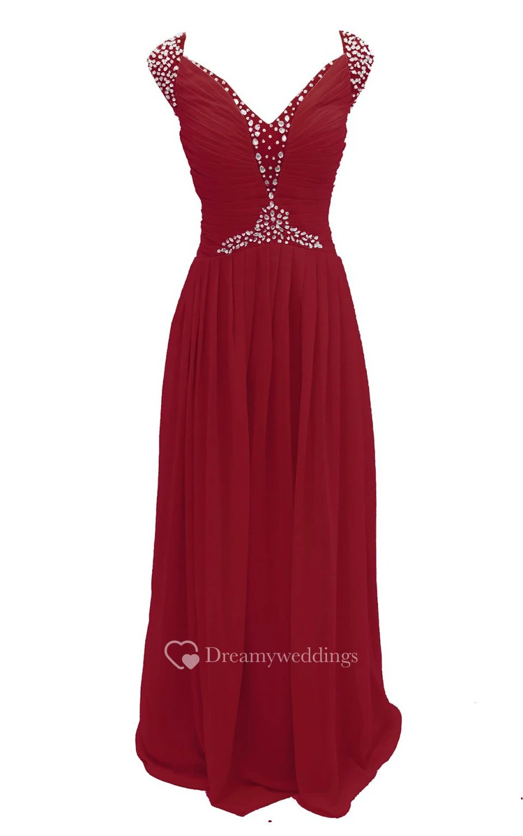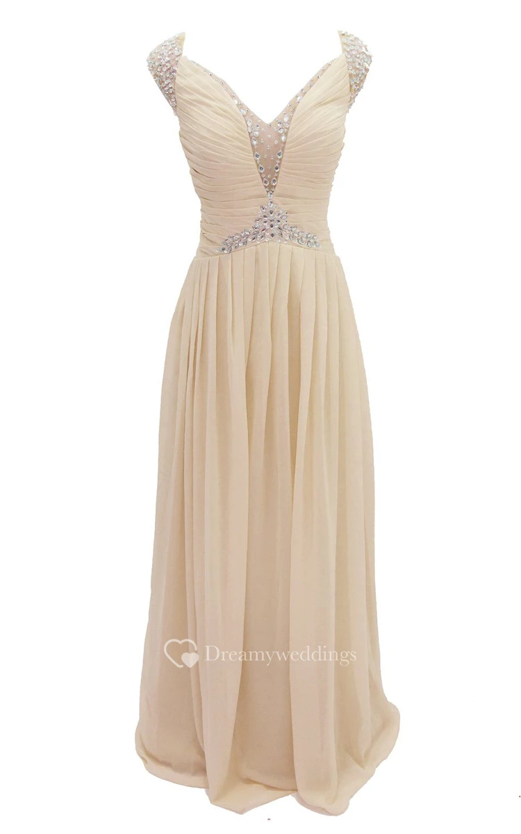 Cap-sleeve V-neck Chiffon A-line Gown With Crystal Detail