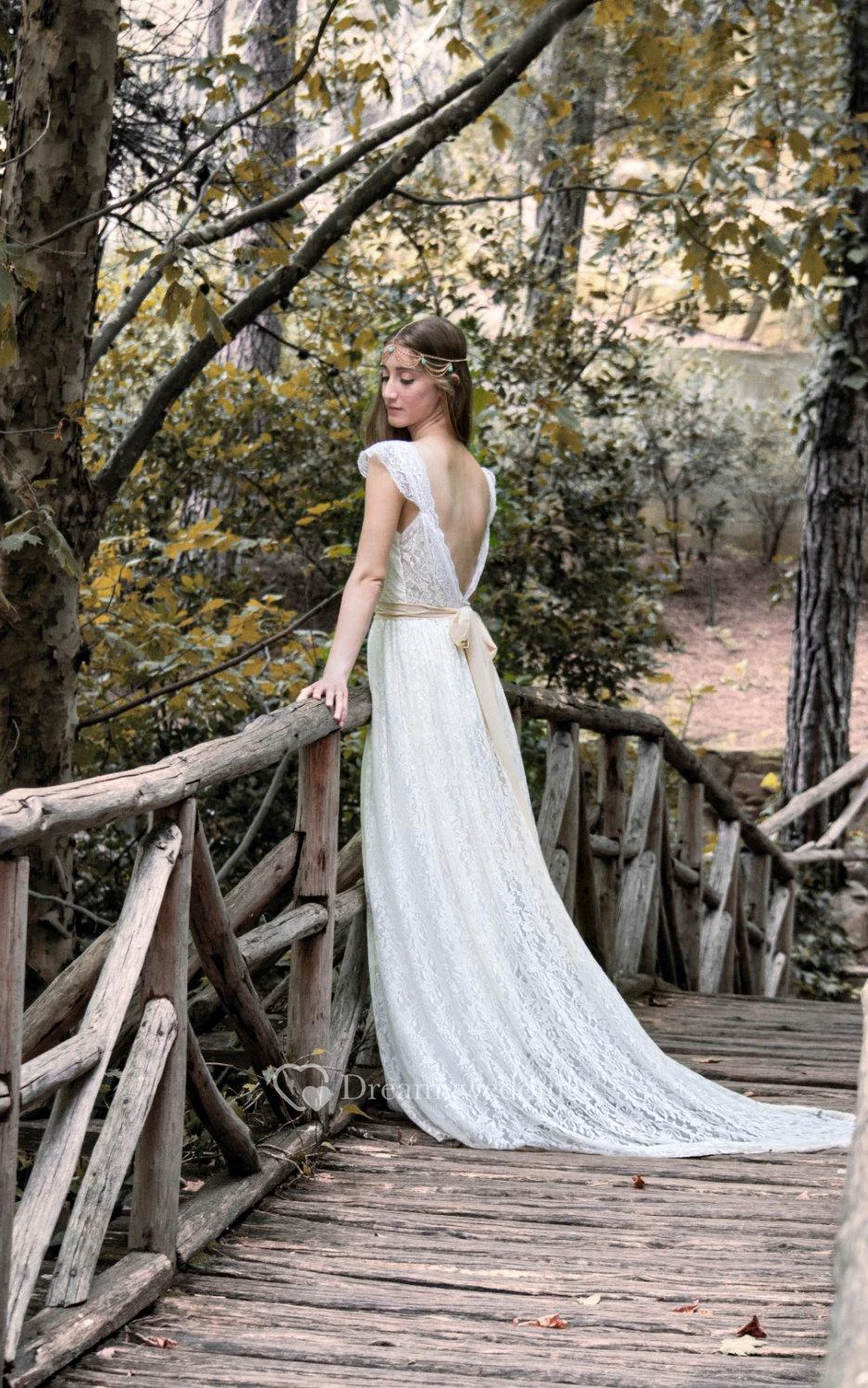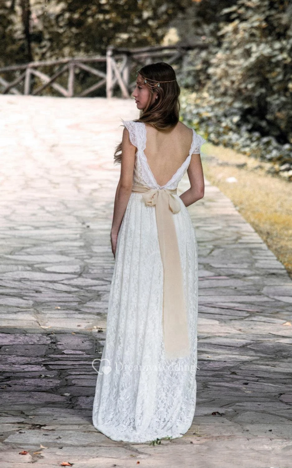 Cap Sleeve V-Neck Lace Bohemian Style Dress With Beadings and Deep-V Back