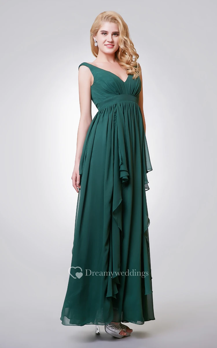 Cap-sleeve V-neck Organza Ball Gown With Lace Appliques and Belt