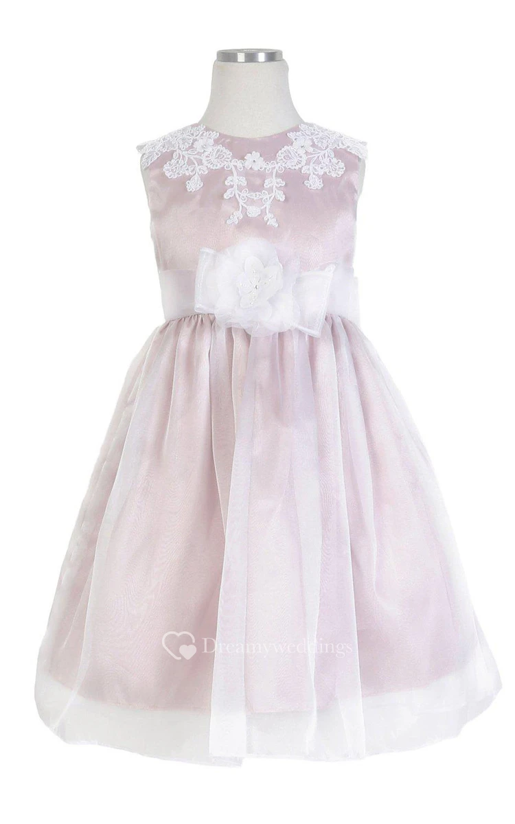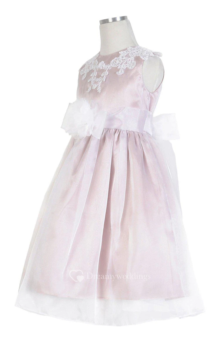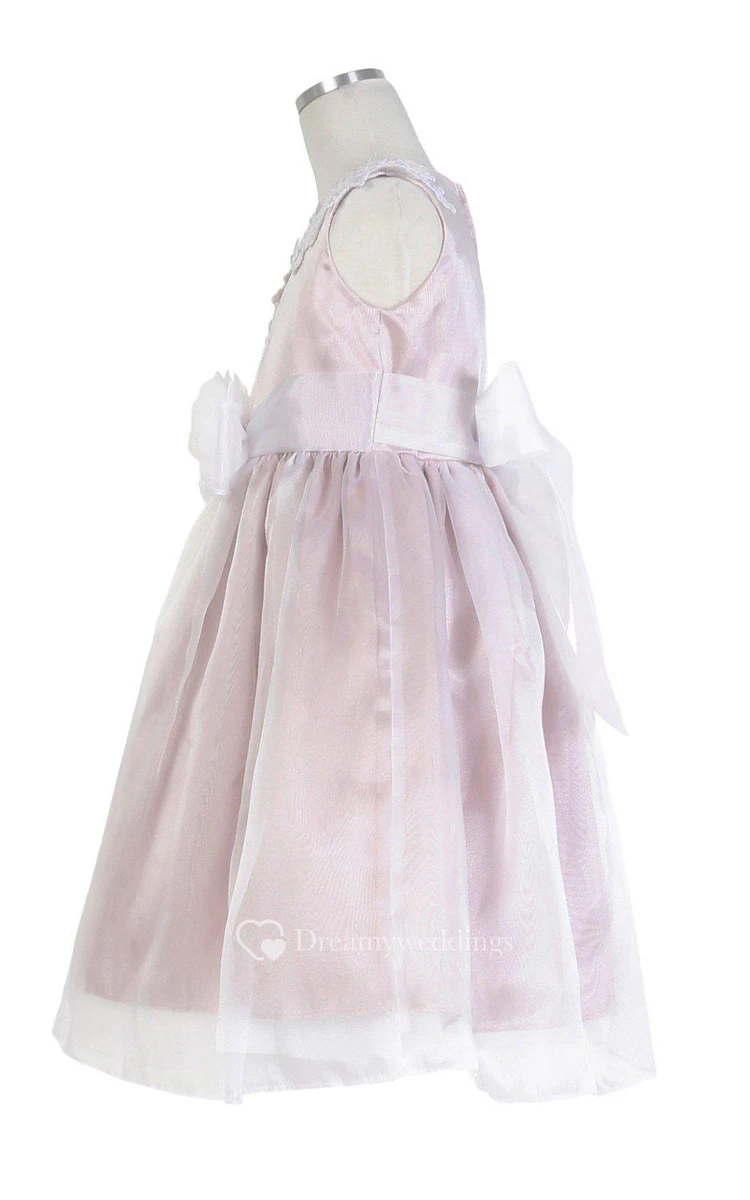 Cap-sleeved A-line Appliqued Dress With Pleats and Bow