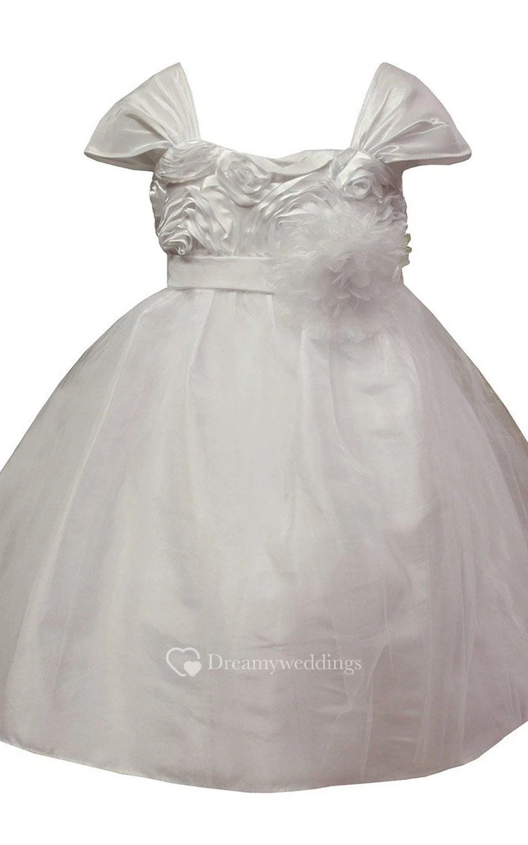 Cap-sleeved A-line Dress With Floral Bodice