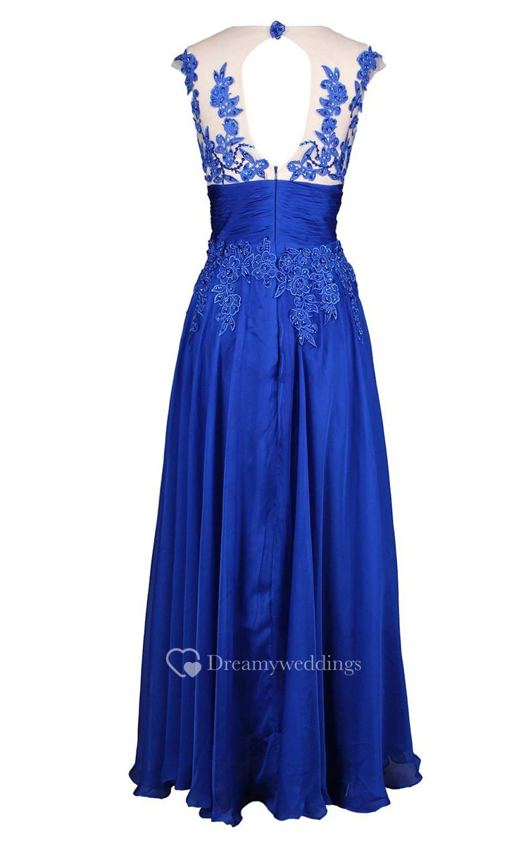 Cap-sleeved A-line Gown With Appliques and Keyhole