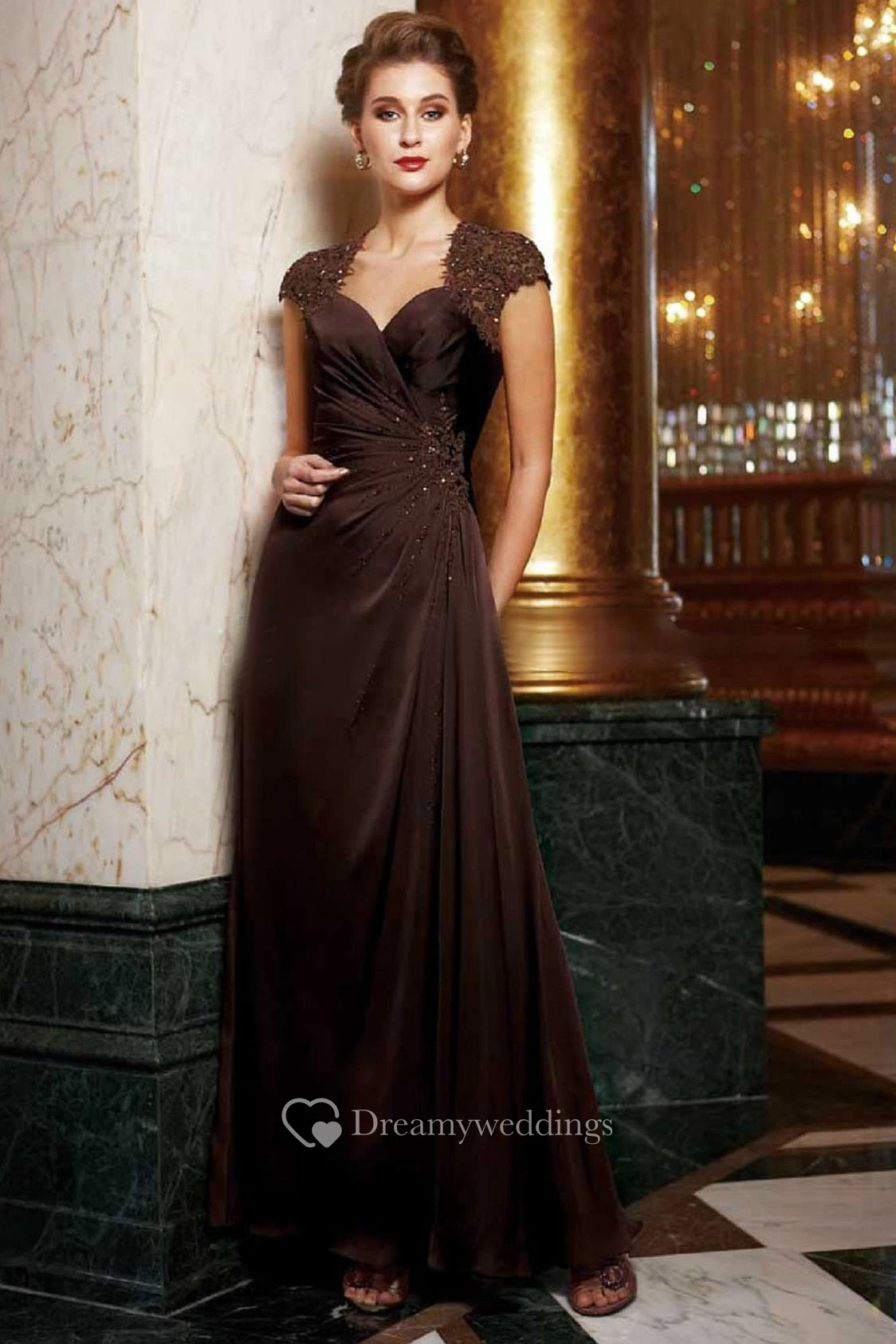 Cap-Sleeved A-Line Gown With Beadings And Appliques