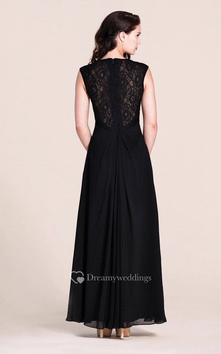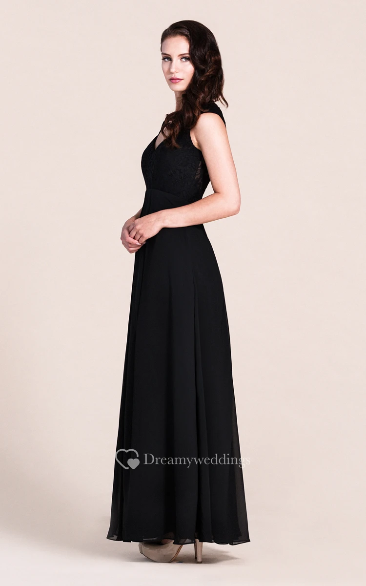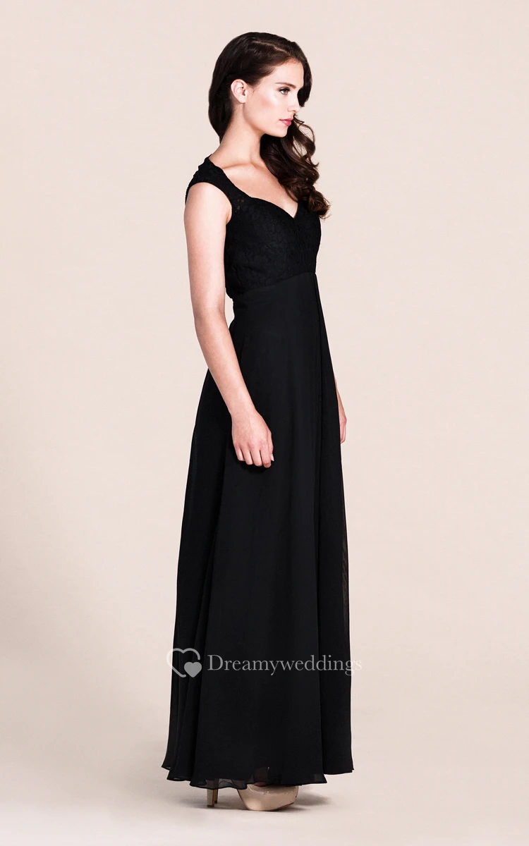 Cap-sleeved A-line Gown With Lace Bodice