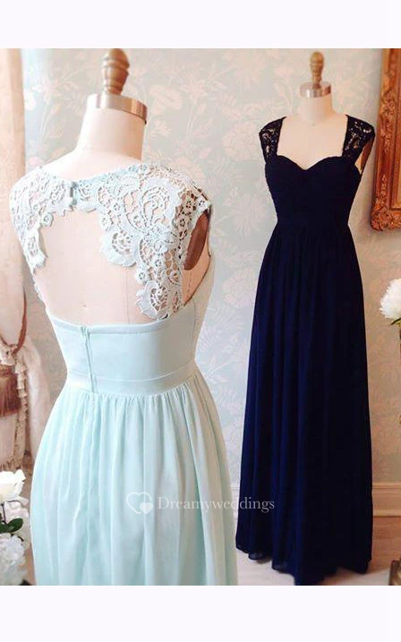 Cap-sleeved A-line Long Chiffon Dress with Keyhole Back