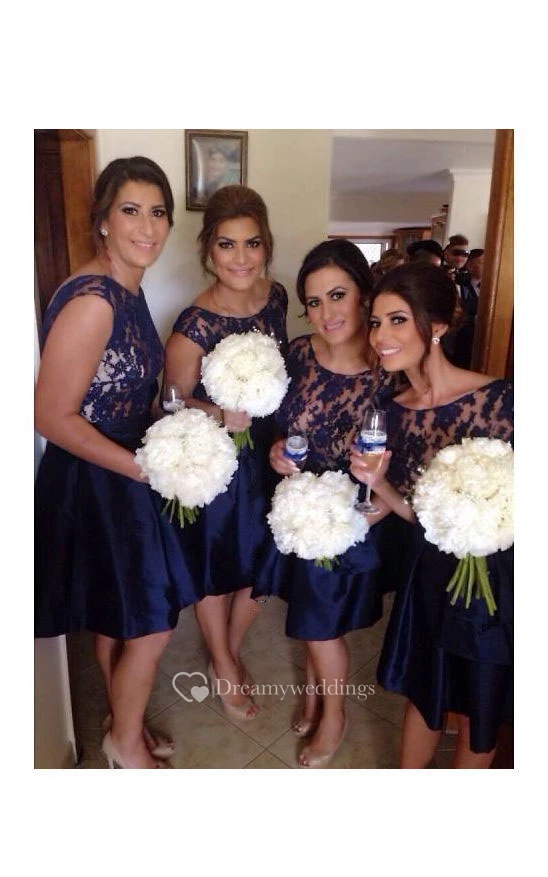Cap-sleeved A-line Short Lace Taffeta Dress