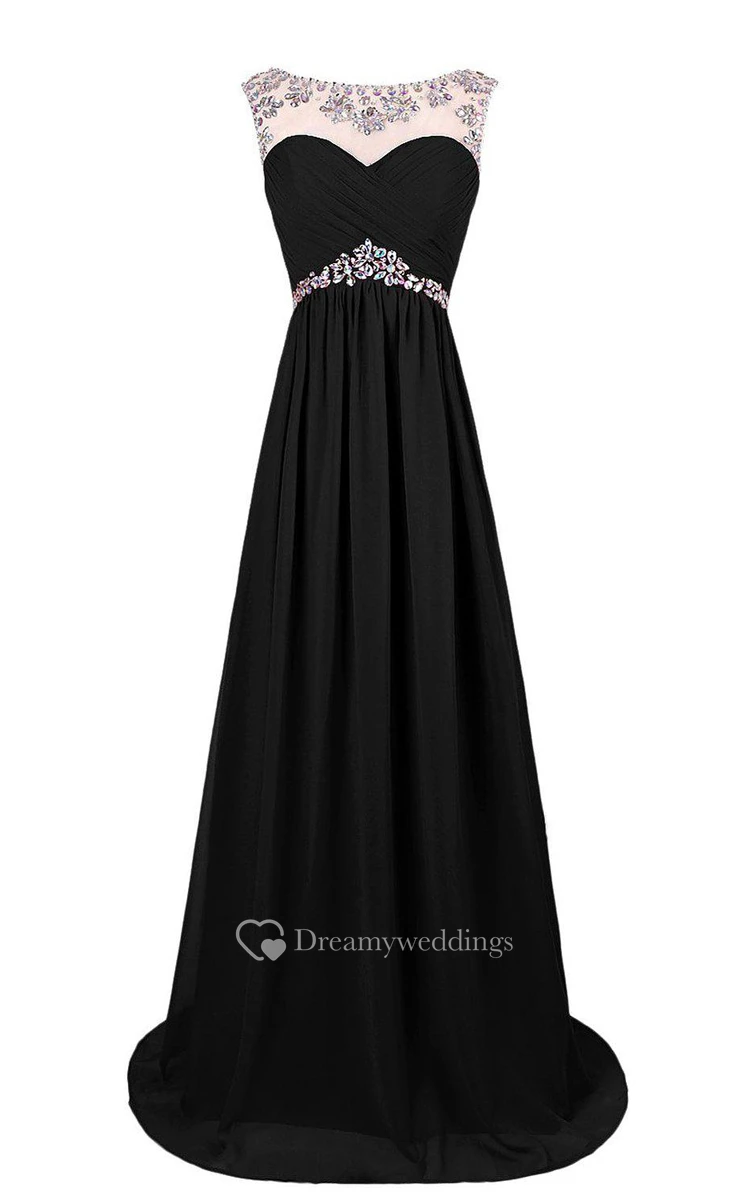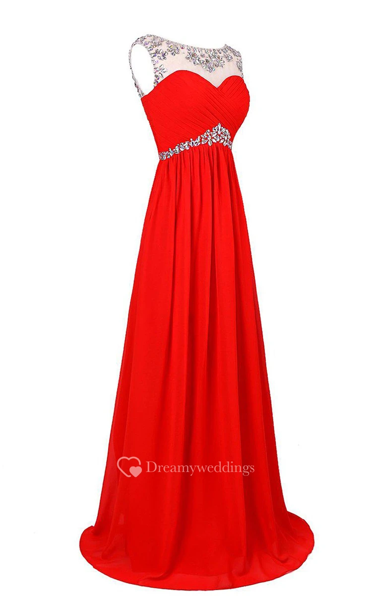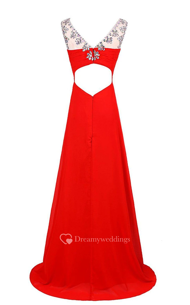 Cap-sleeved Chiffon Gown With Beaded Neckline