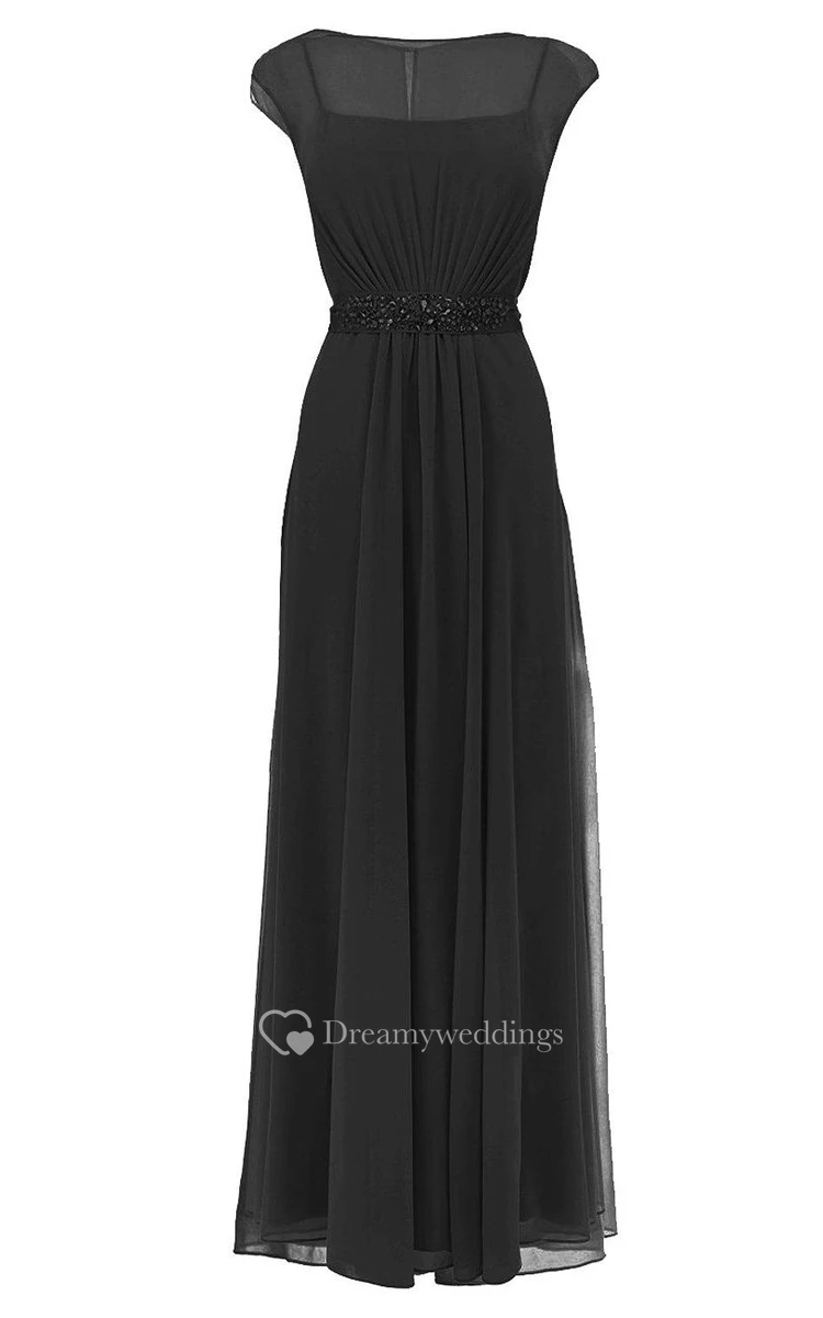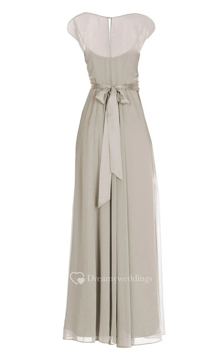 Cap-sleeved Chiffon Gown With Illusion Bodice and Bow