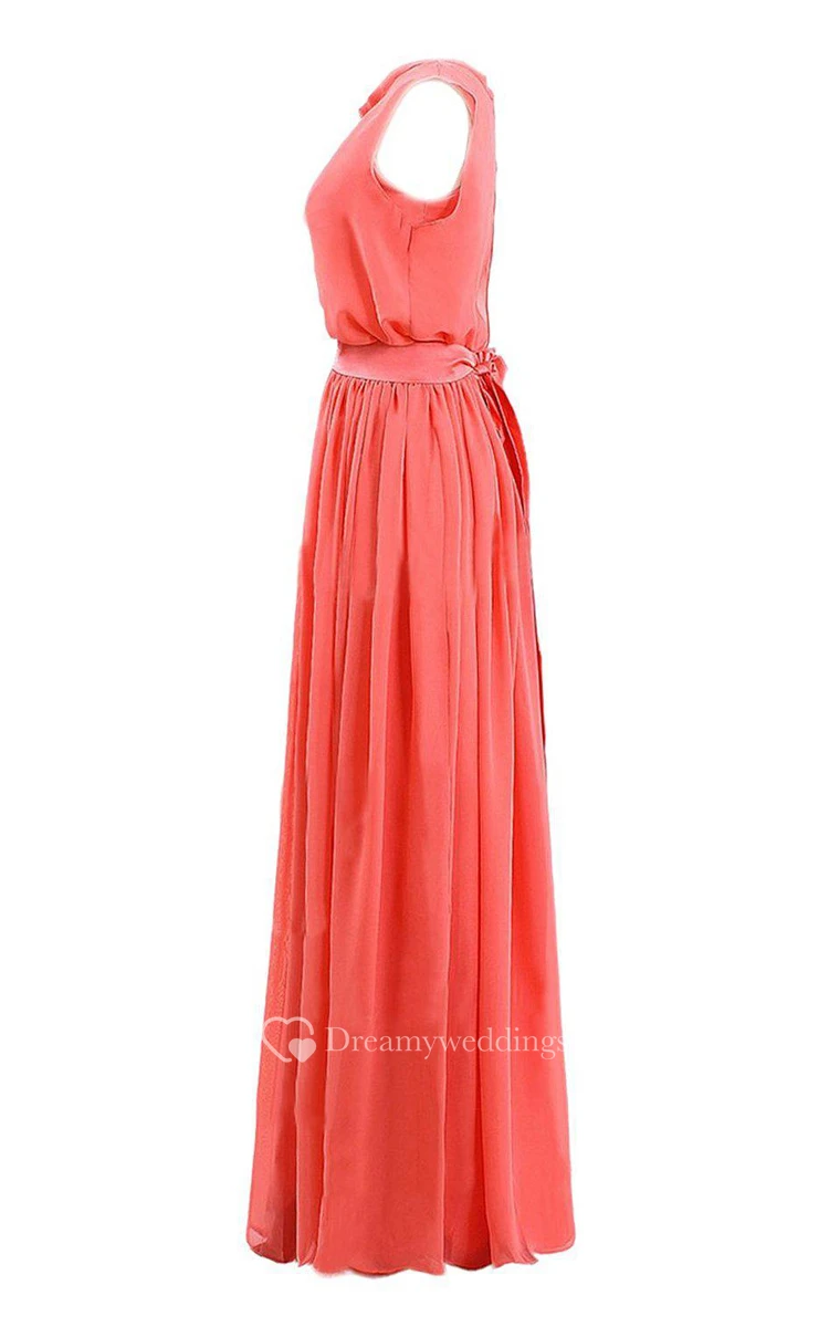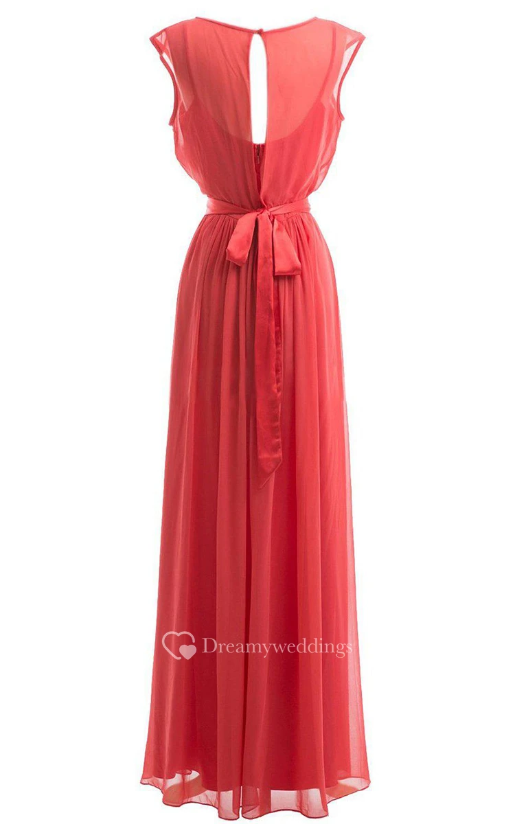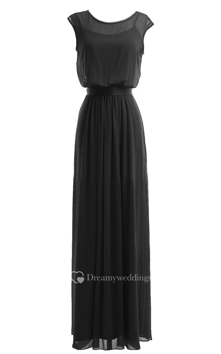 Cap-sleeved Chiffon Gown With Illusion Bodice