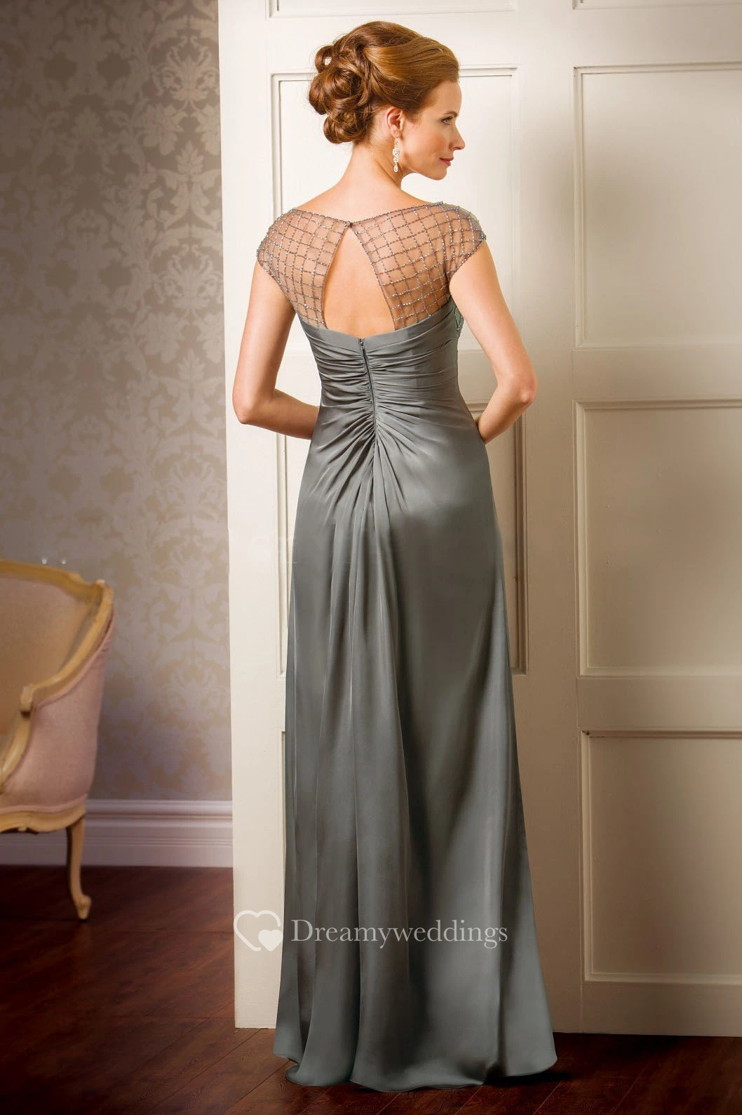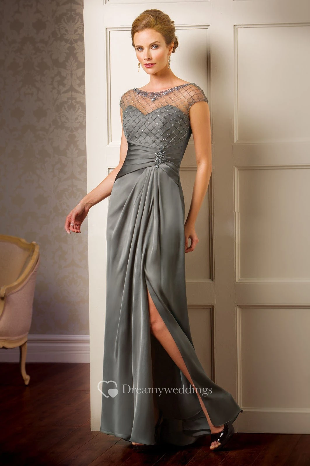 Cap-Sleeved Front Silted Mother Of The Bride Dress With Keyhole Back