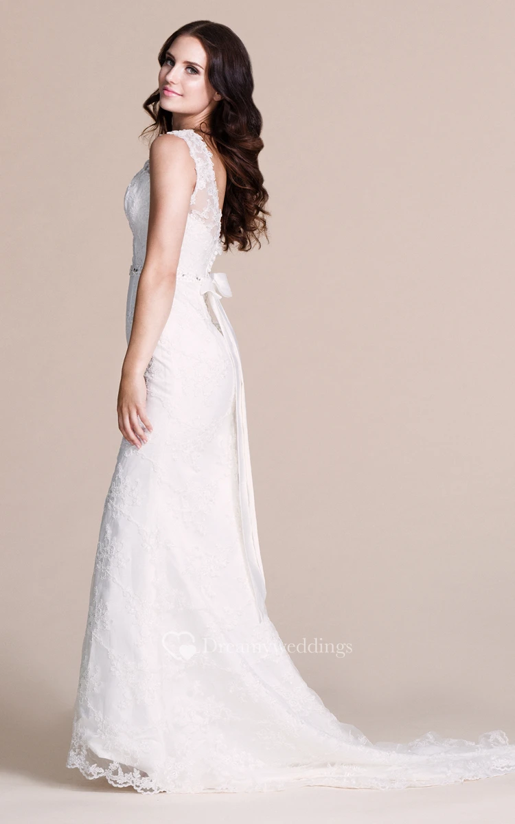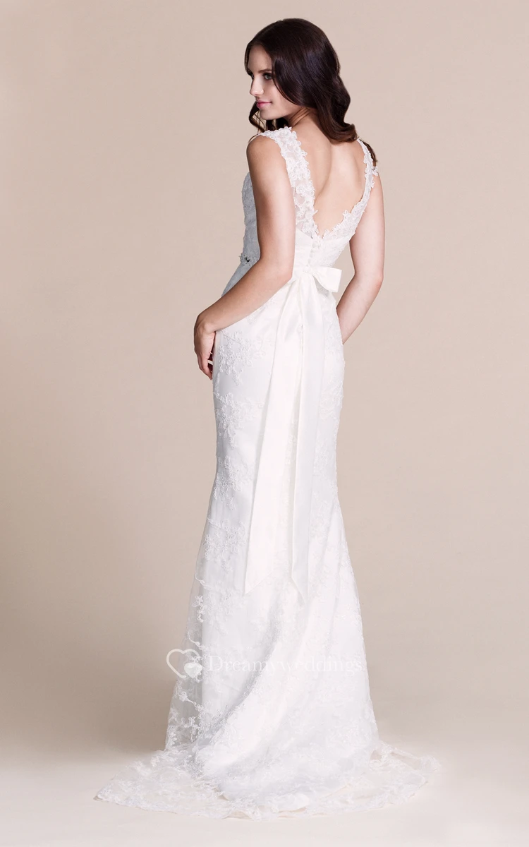 Cap-sleeved Lace Gown With V-back and Bow