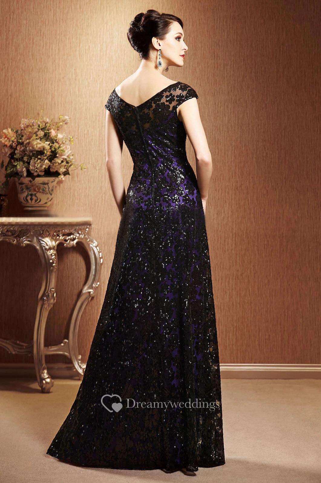 Cap-Sleeved Long Gown With Allover Sequins And V-Back