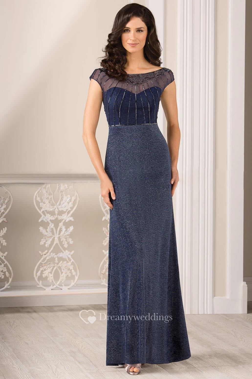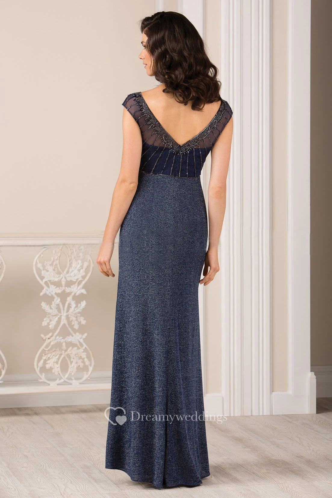 Cap-Sleeved Long Gown With Beadings And V-Back