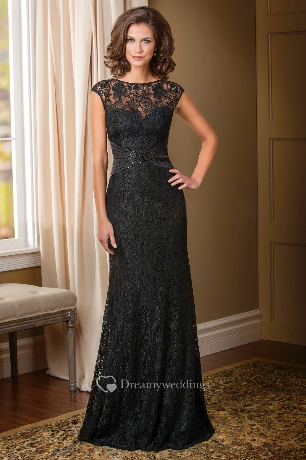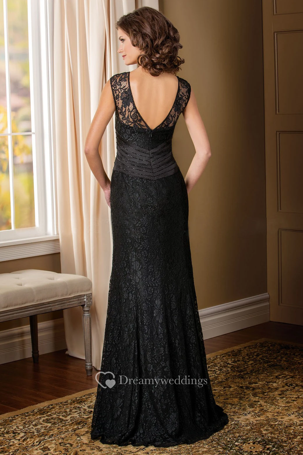 Cap-Sleeved Long Lace Mother Of The Bride Dress With Beadings And V-Back