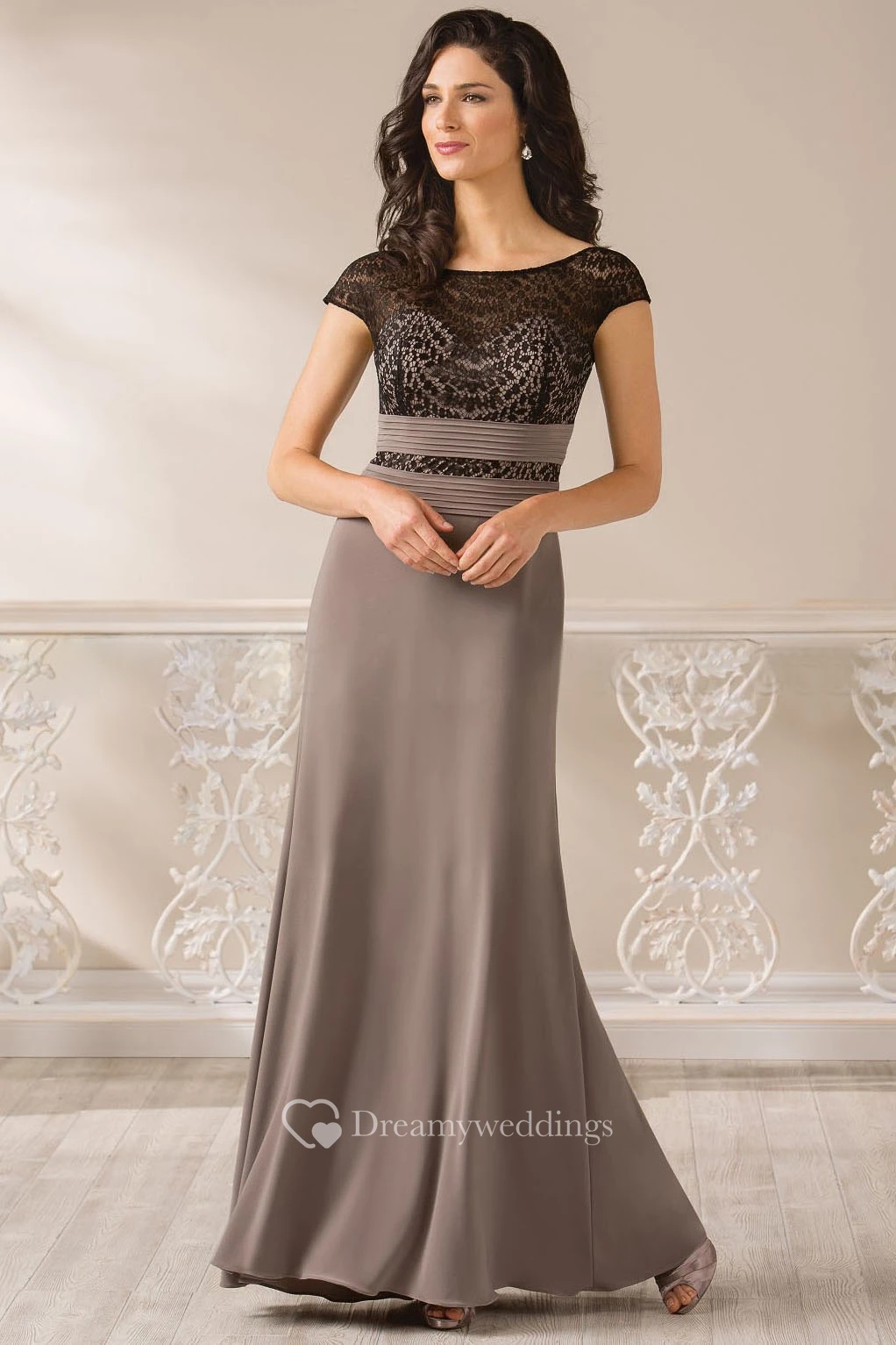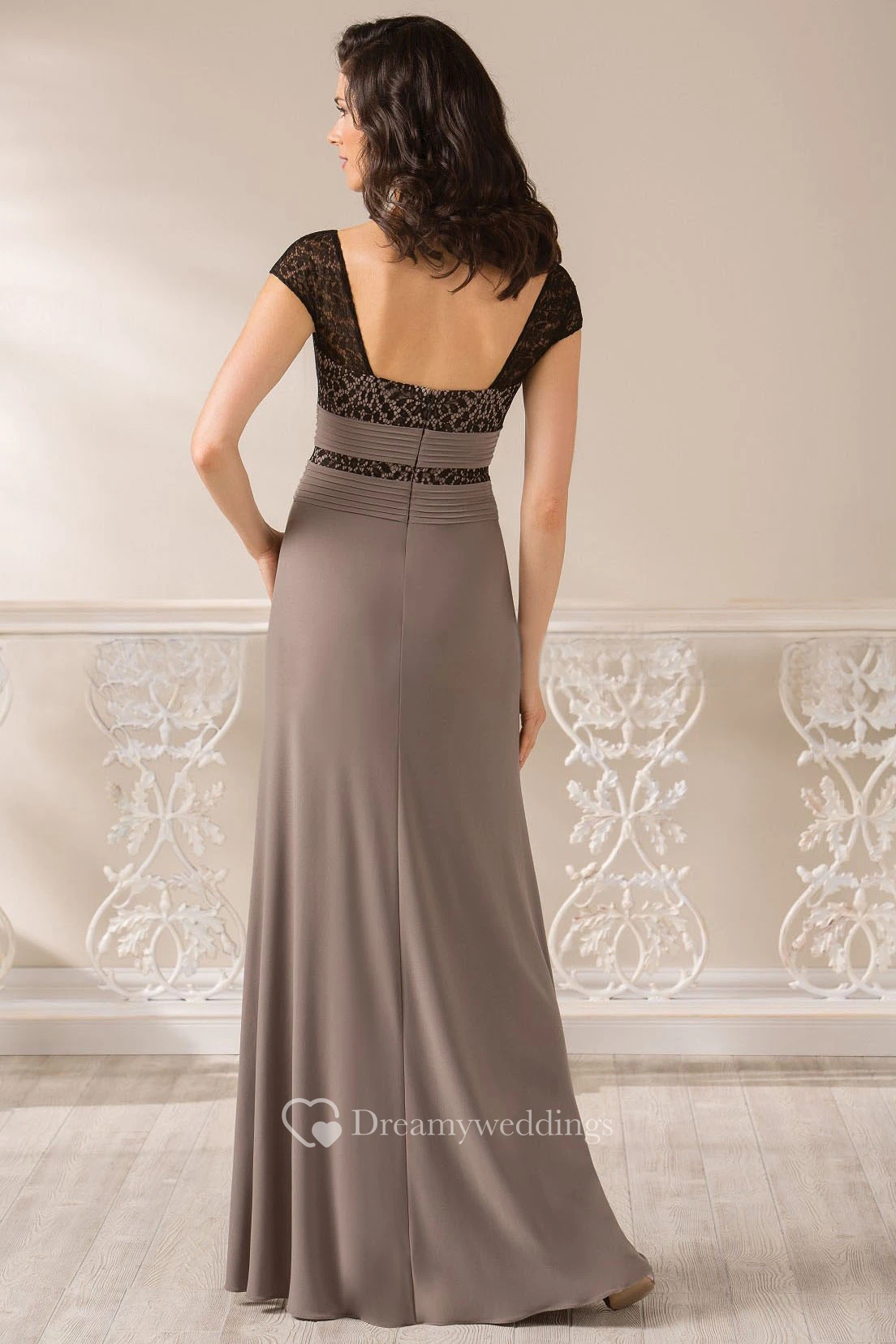 Cap-Sleeved Long Mother Of The Bride Dress With Bateau-Neck And Square Back