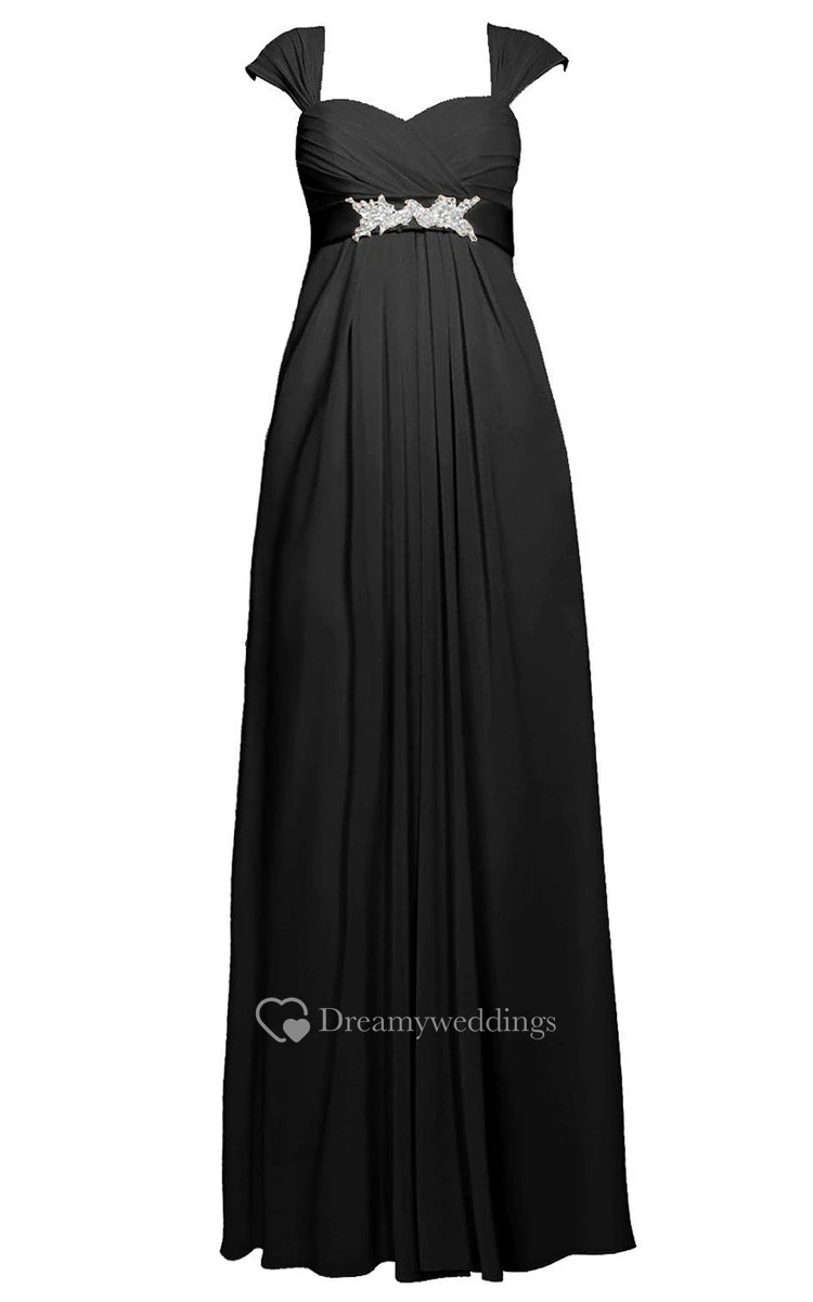 Cap-sleeved Long Pleated Gown With Empire Waist