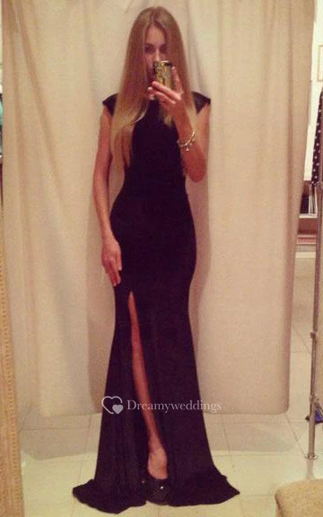 Cap-sleeved Mermaid Chiffon Dress with Split