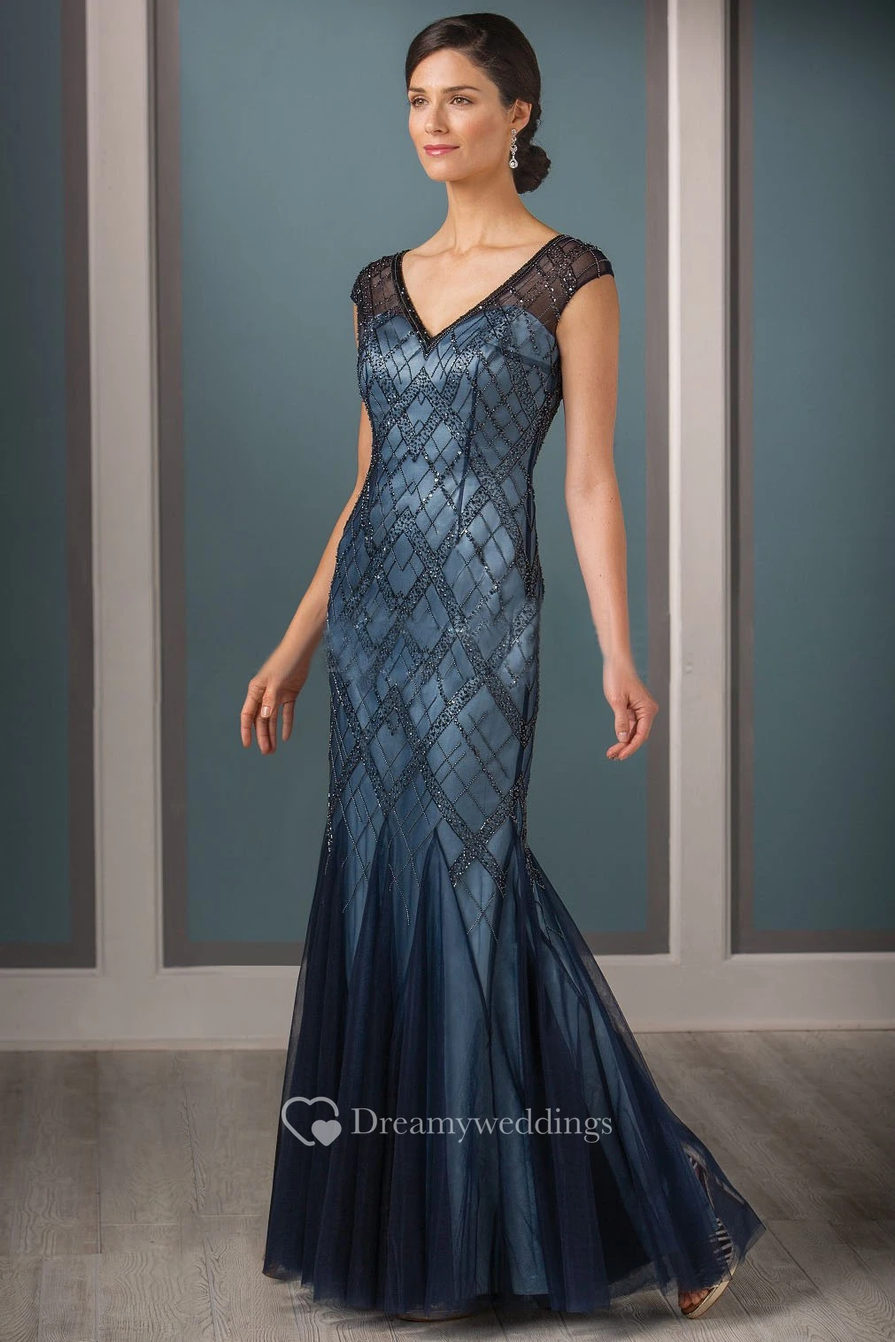 Cap-Sleeved Mermaid Mother Of The Bride Dress With Beadings And Pleats