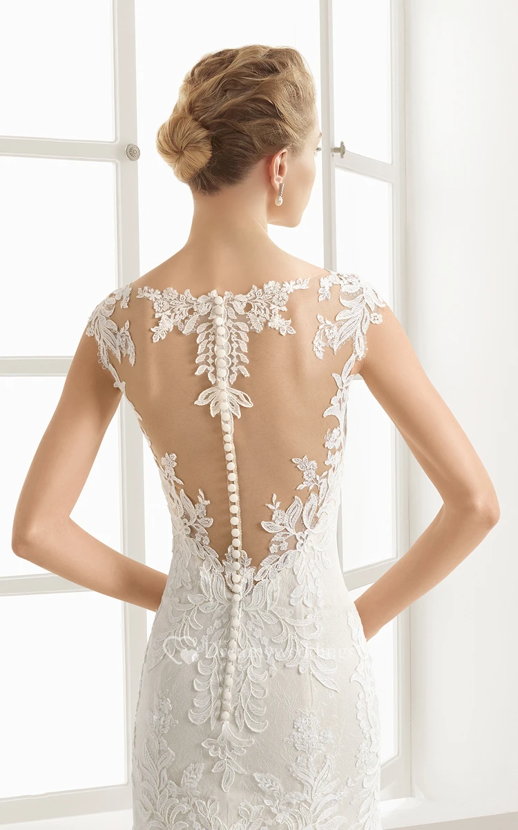 Cap-Sleeved Regal Appliqued Dress With Illusion Neck
