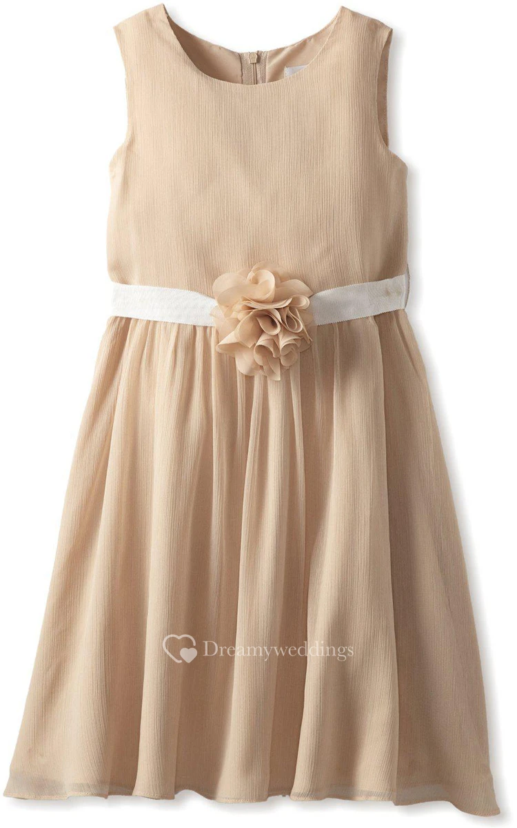 Cap-sleeved Scoop-neck A-line Dress With Pleats and Flower