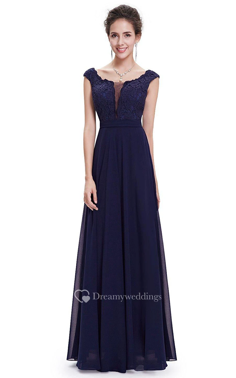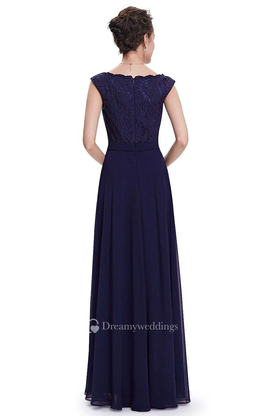 Cap-sleeved Scoop-neck A-line Long Chiffon Dress