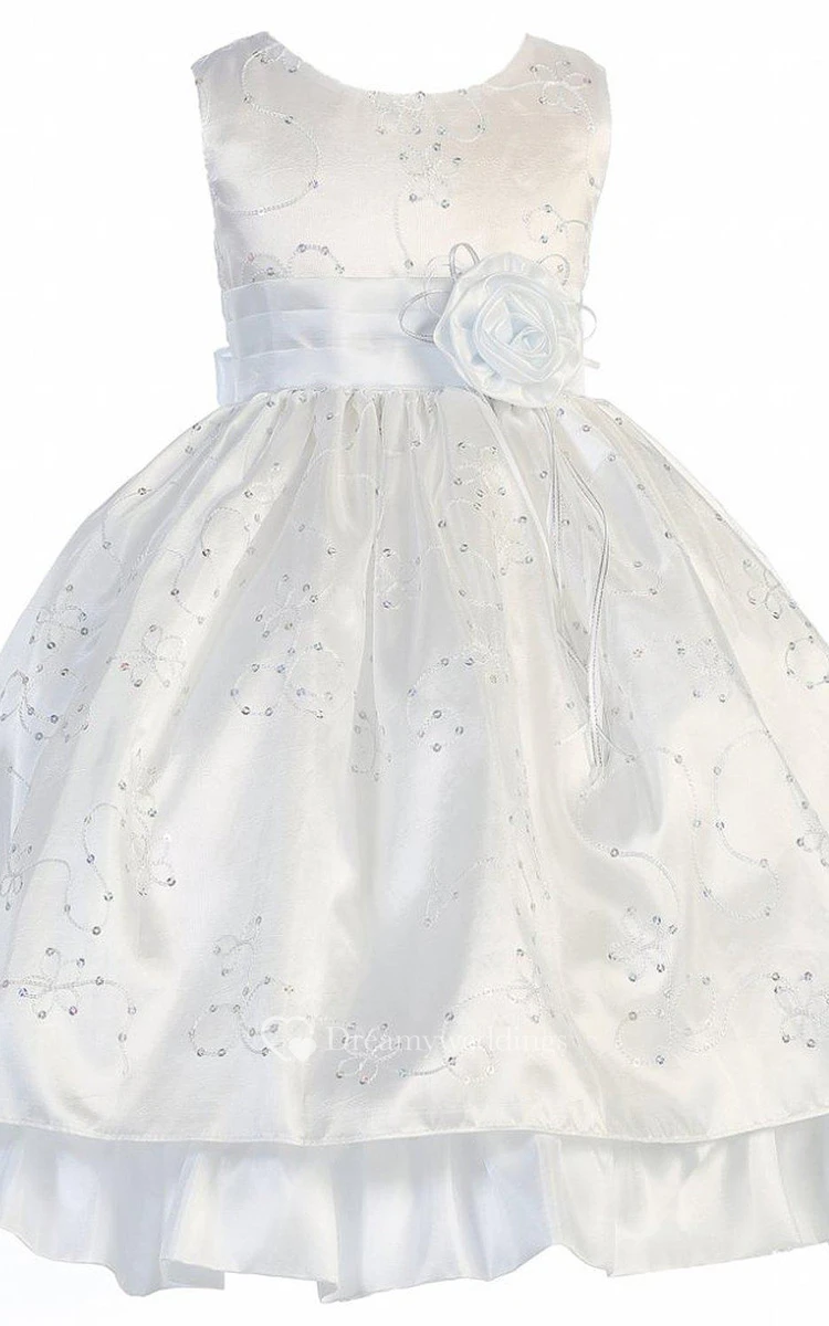 Cap-sleeved Scoop-neck Dress With Sequins and Flower