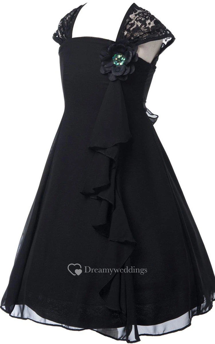 Cap-sleeved Square-neck Chiffon Dress With Key-hole Back