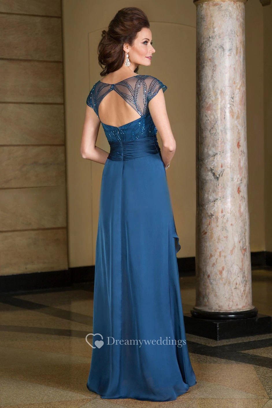 Cap-Sleeved V-Neck Long Mother Of The Bride Dress With Ruffles And Sequins