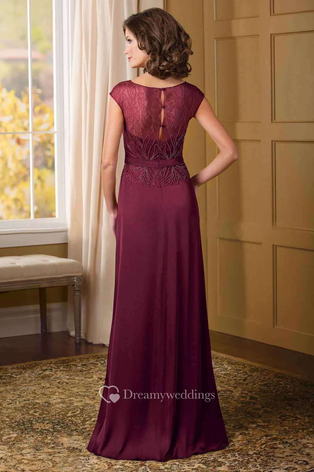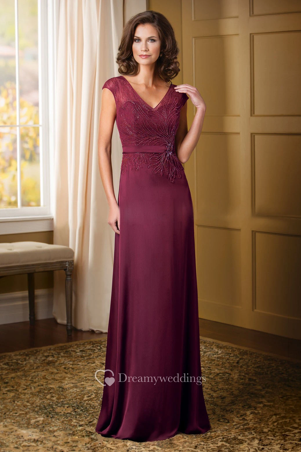 Cap-Sleeved V-Neck Mother Of The Bride Dress With Beadings And Lace Detail