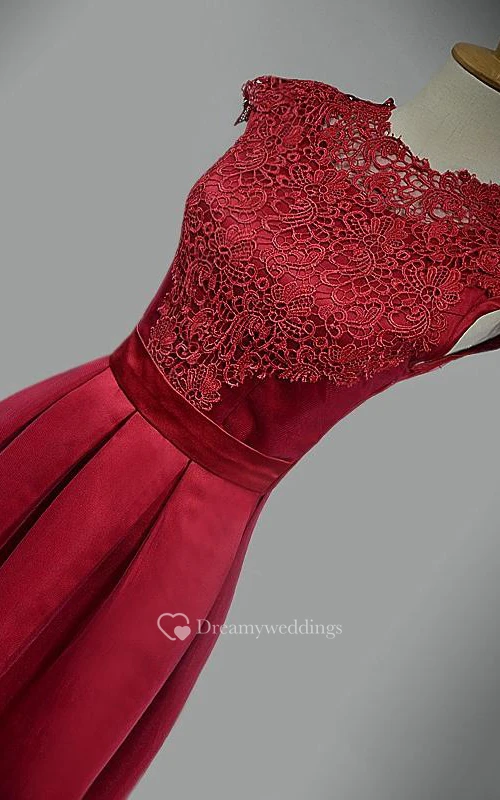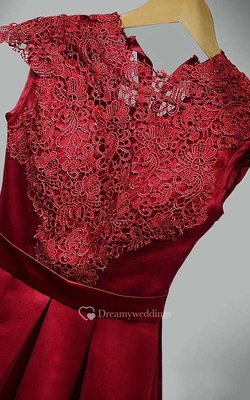 Cap Sleeves A-Line Lace Tea-Length Prom Dress