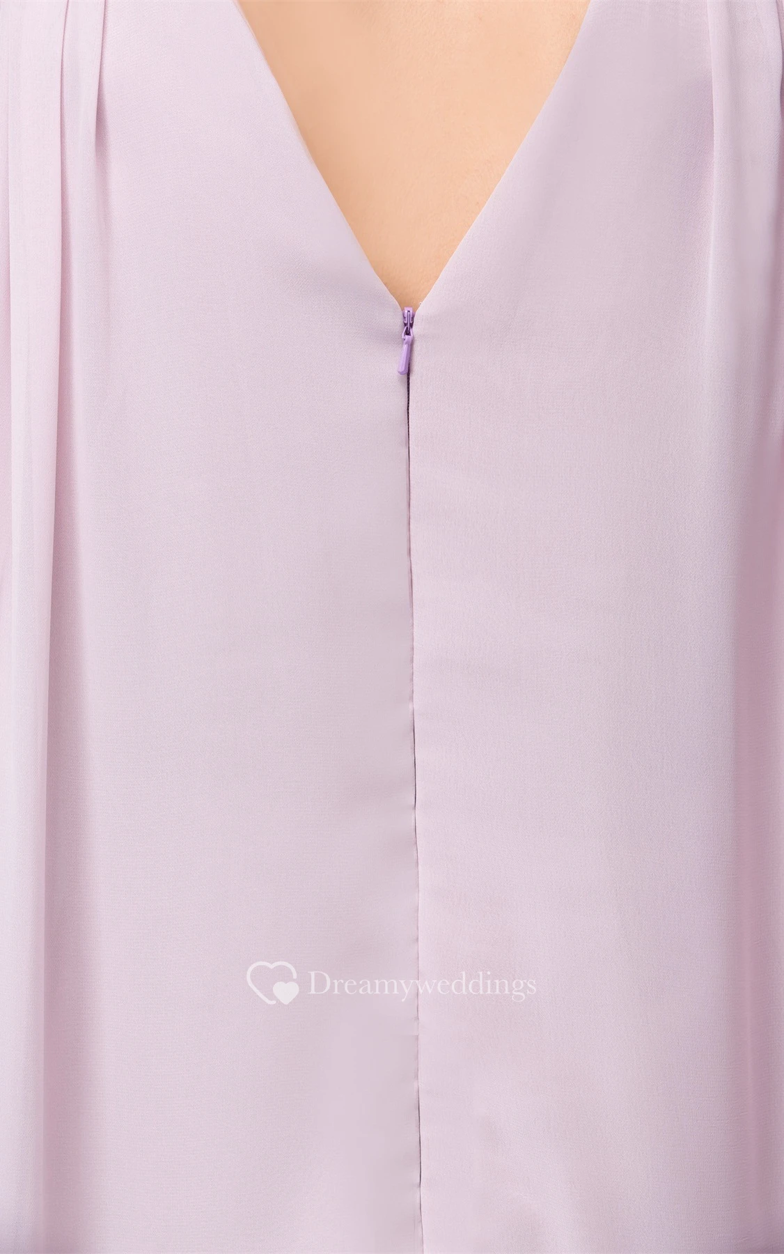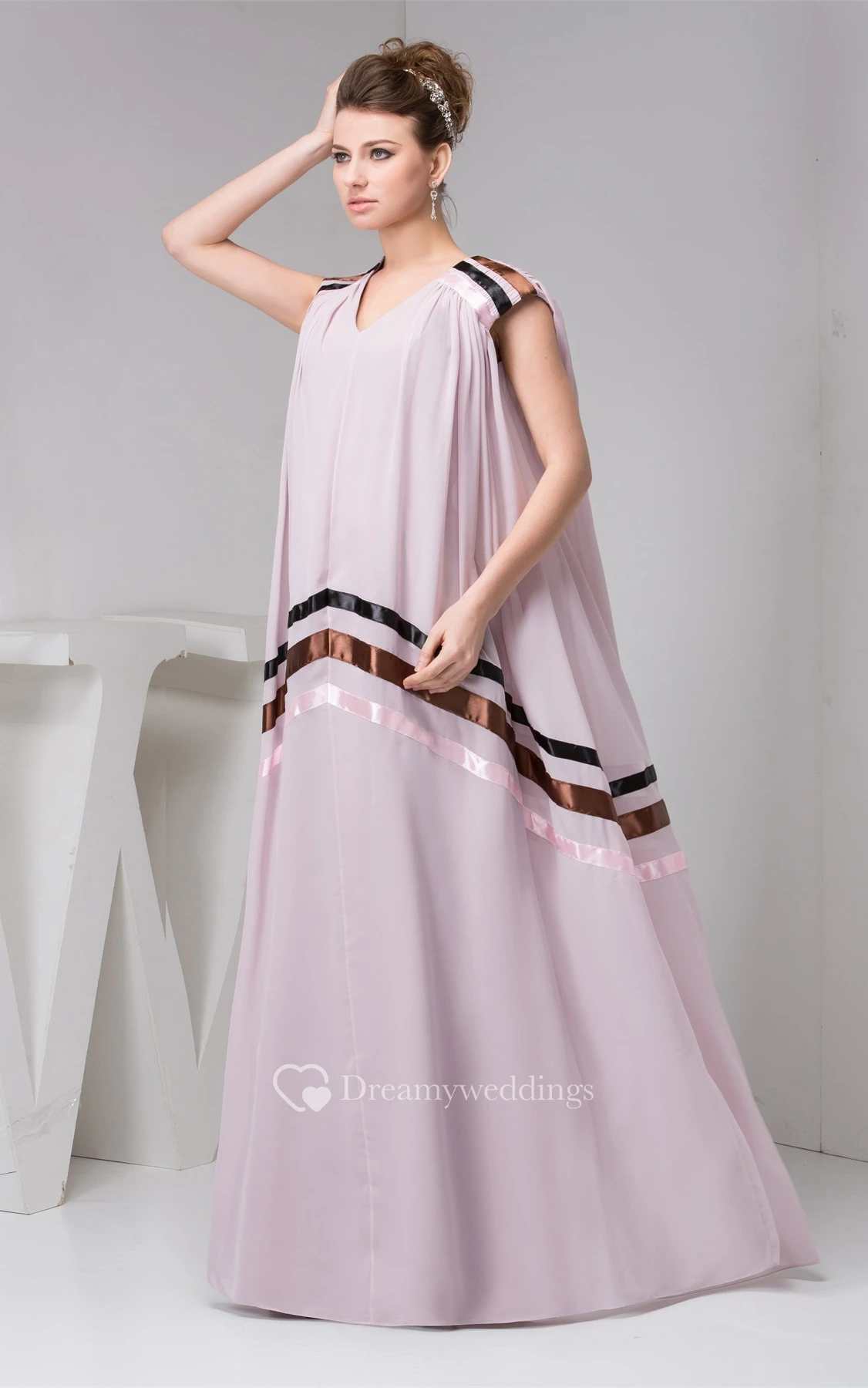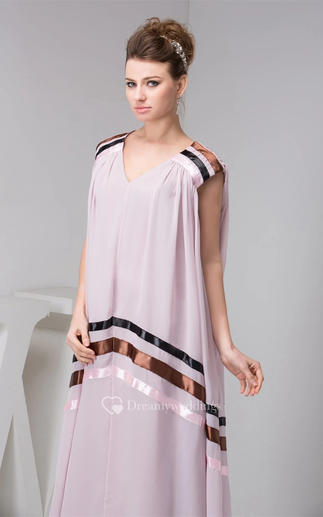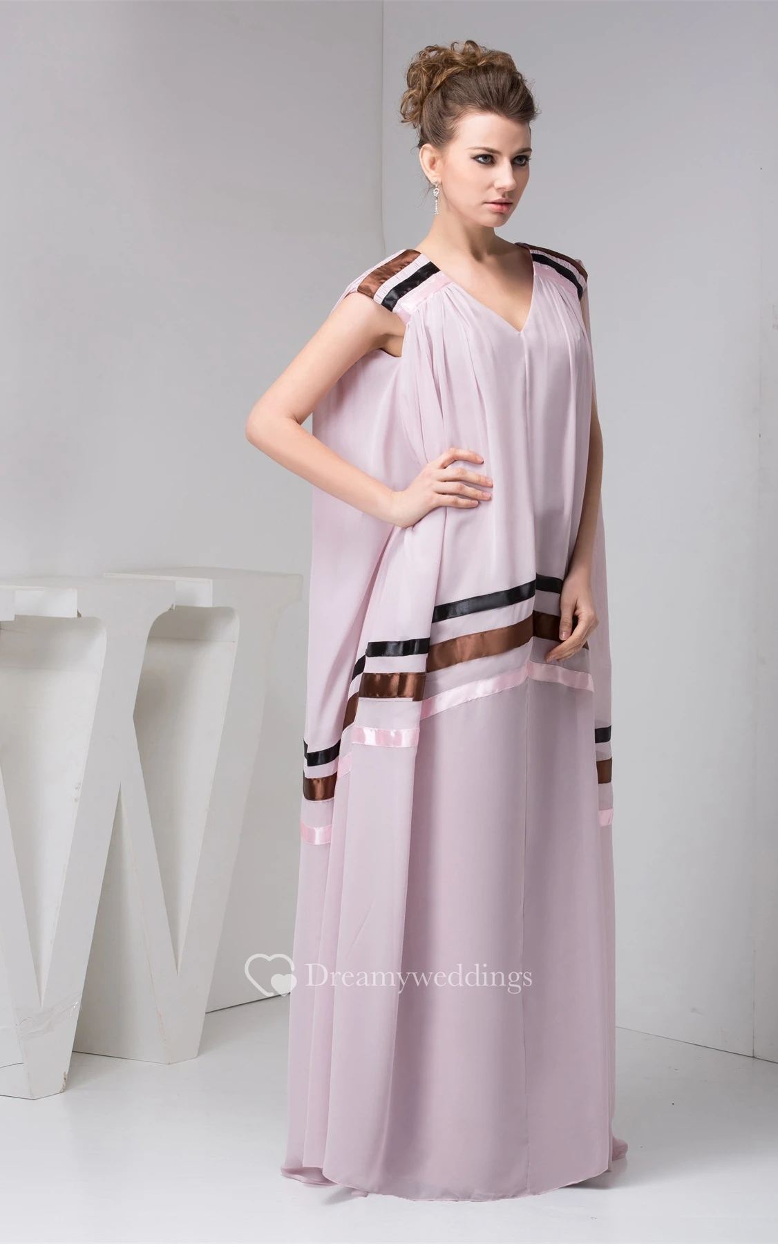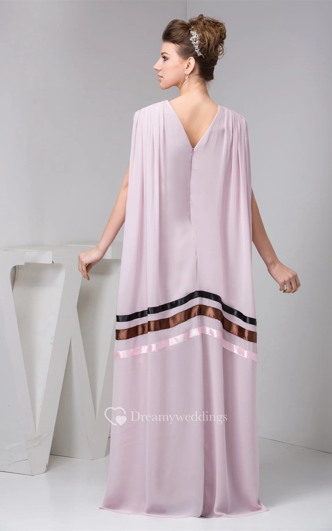 Caped-Sleeve Maxi Plunged Dress With Pleats