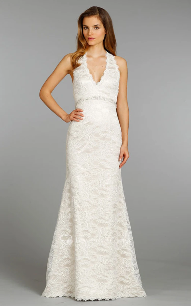 Captivating V-Neckline Floor Length Lace Dress With Beaded Belt