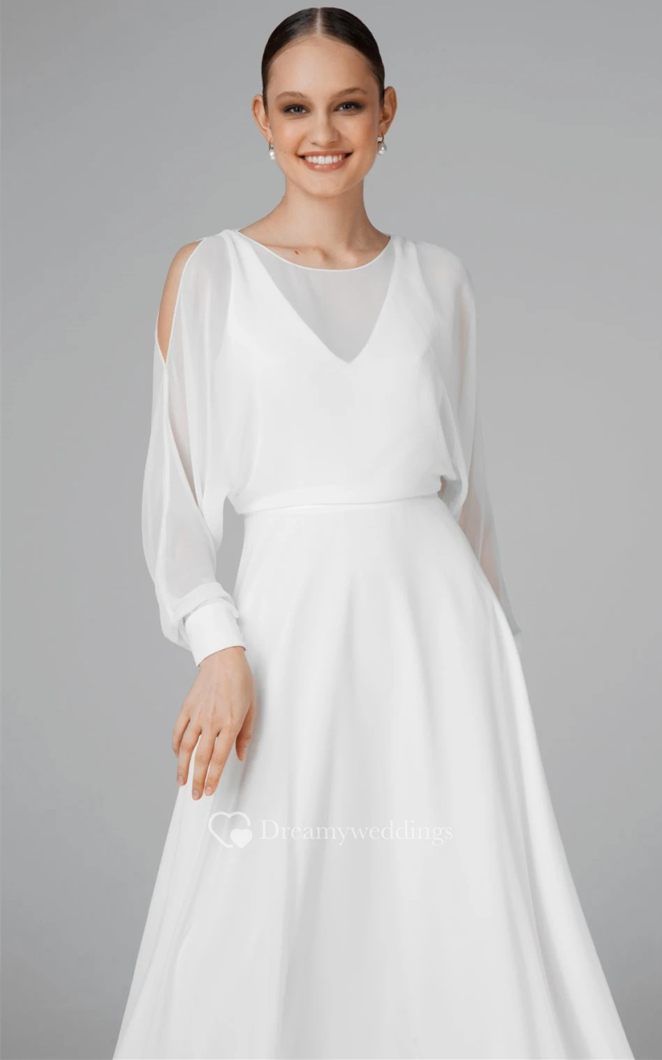 Casual A Line Chiffon Bateau Sweep Train Wedding Dress