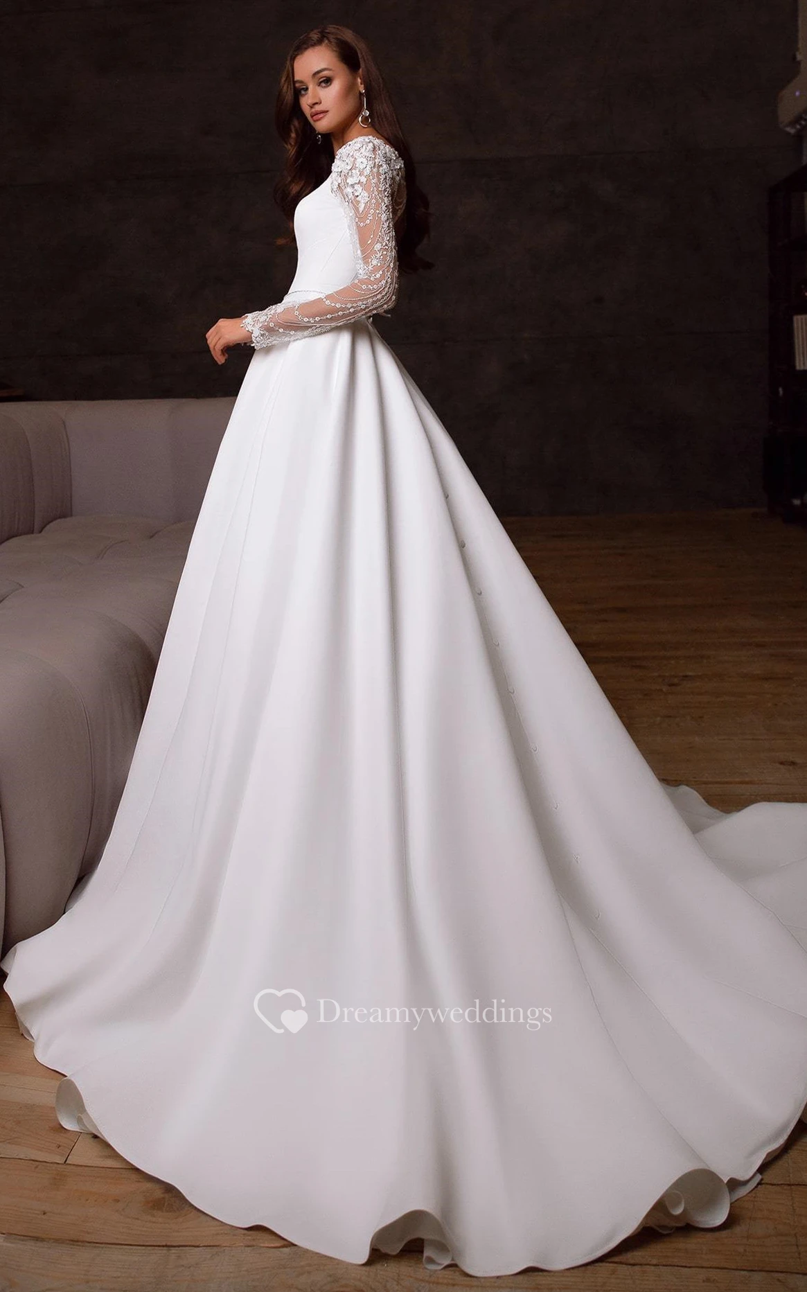 Casual A Line Square Neck Corset Back Satin Wedding Dress with Beading
