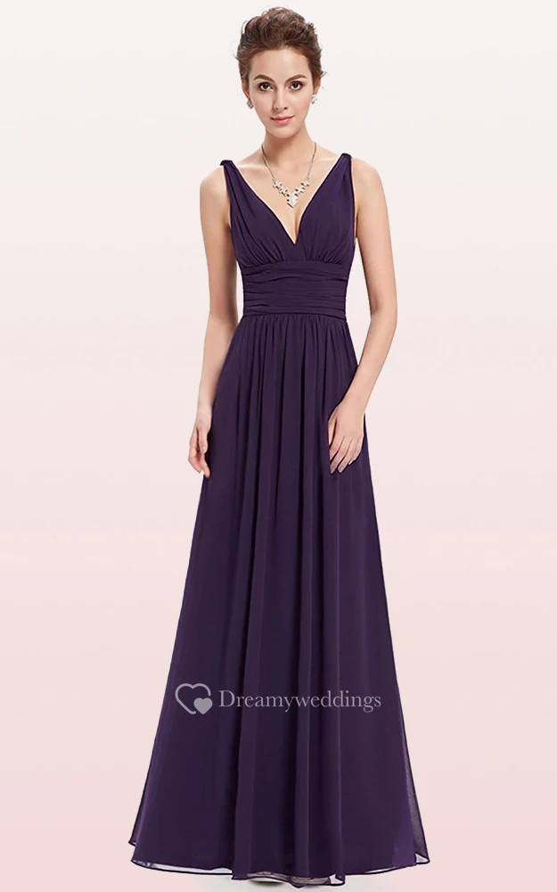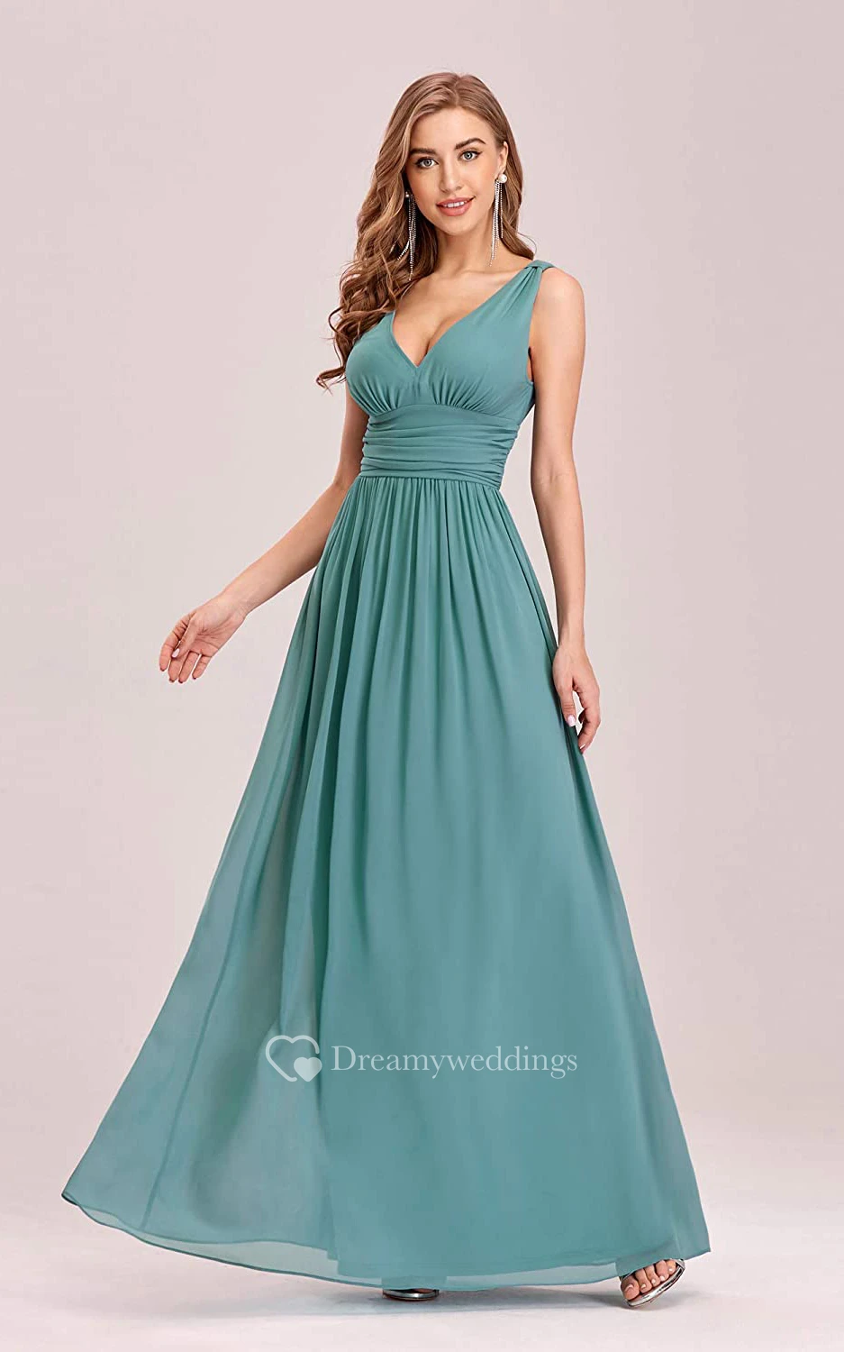 Casual Chiffon V-neck A Line Sleeveless Evening Dress With Ruffles