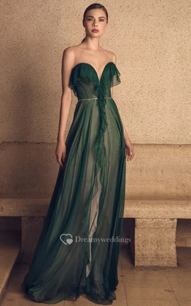 Casual Floor-length Sleeveless Tulle A Line Guest Dress with Ruffles