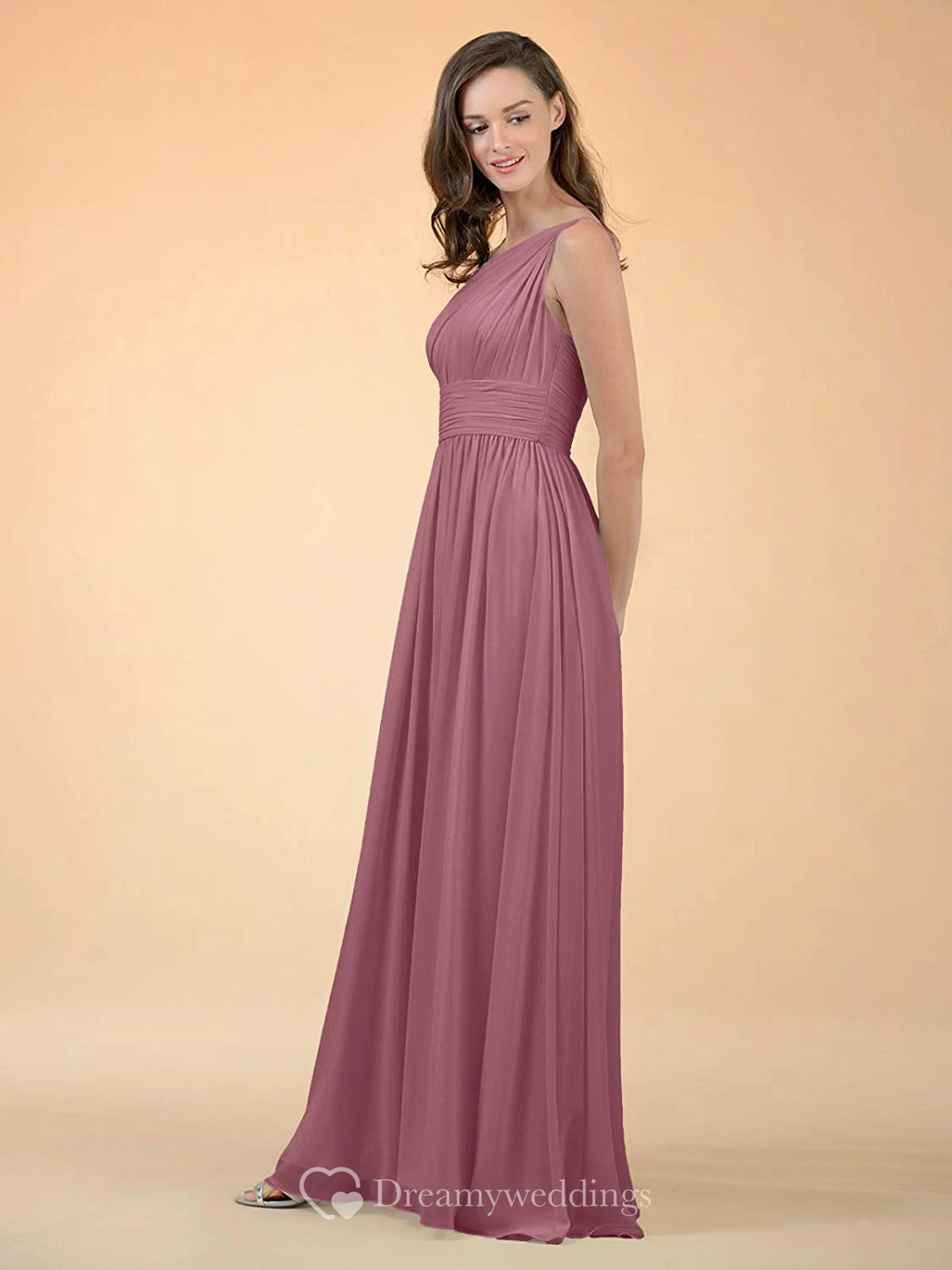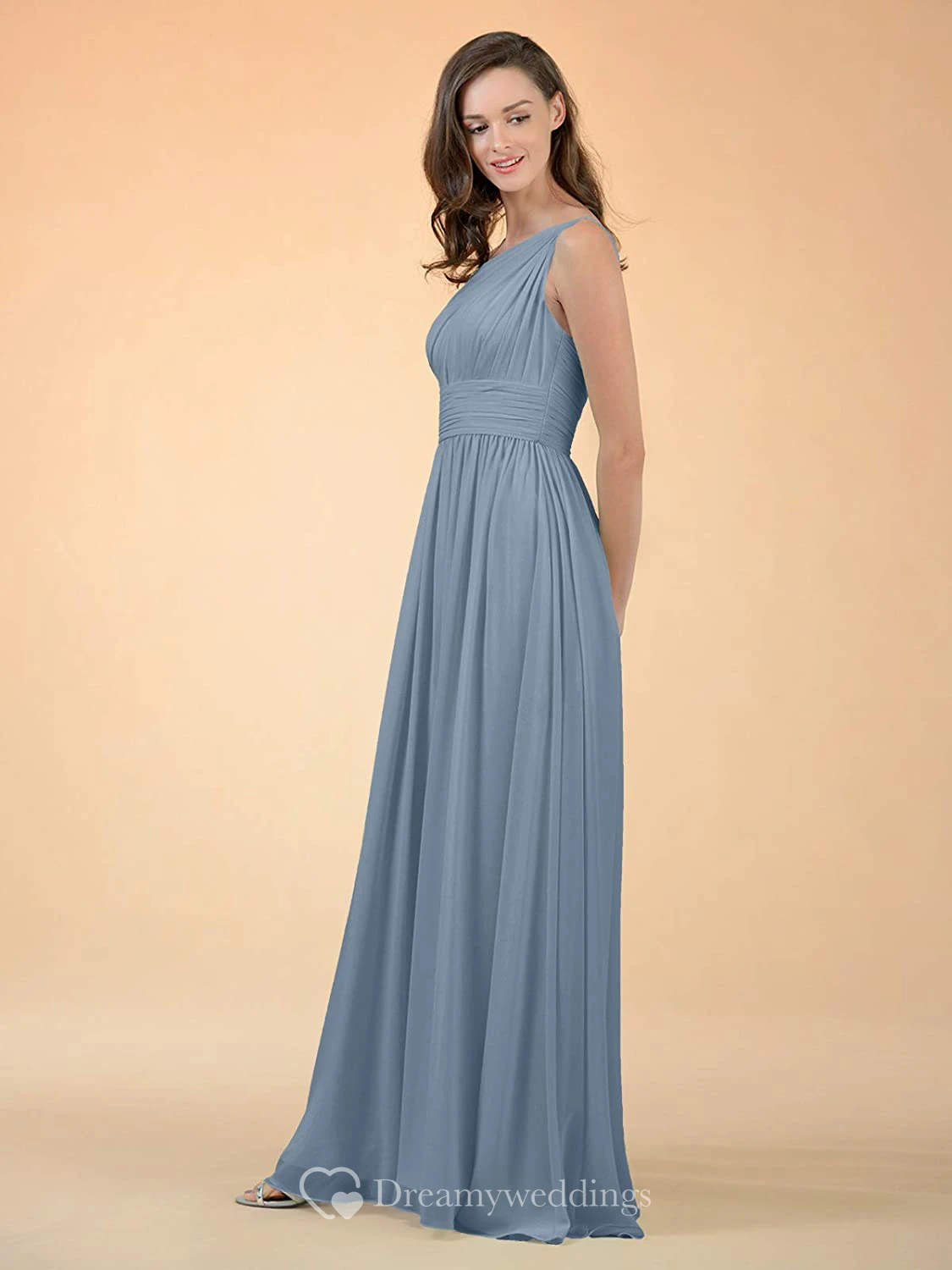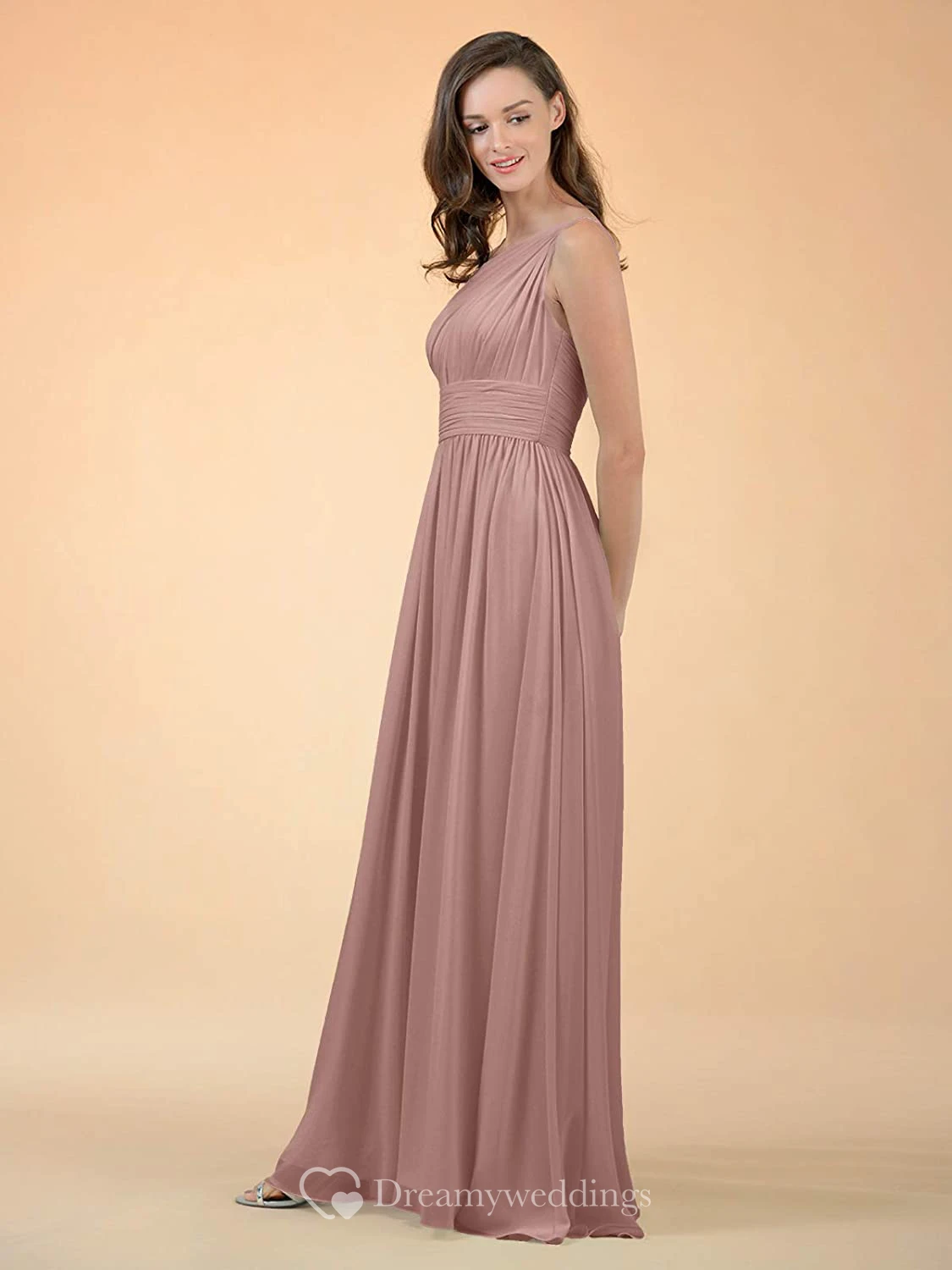 Casual One-shoulder A Line Sleeveless Floor-length Chiffon Bridesmaid Dress With Ruching