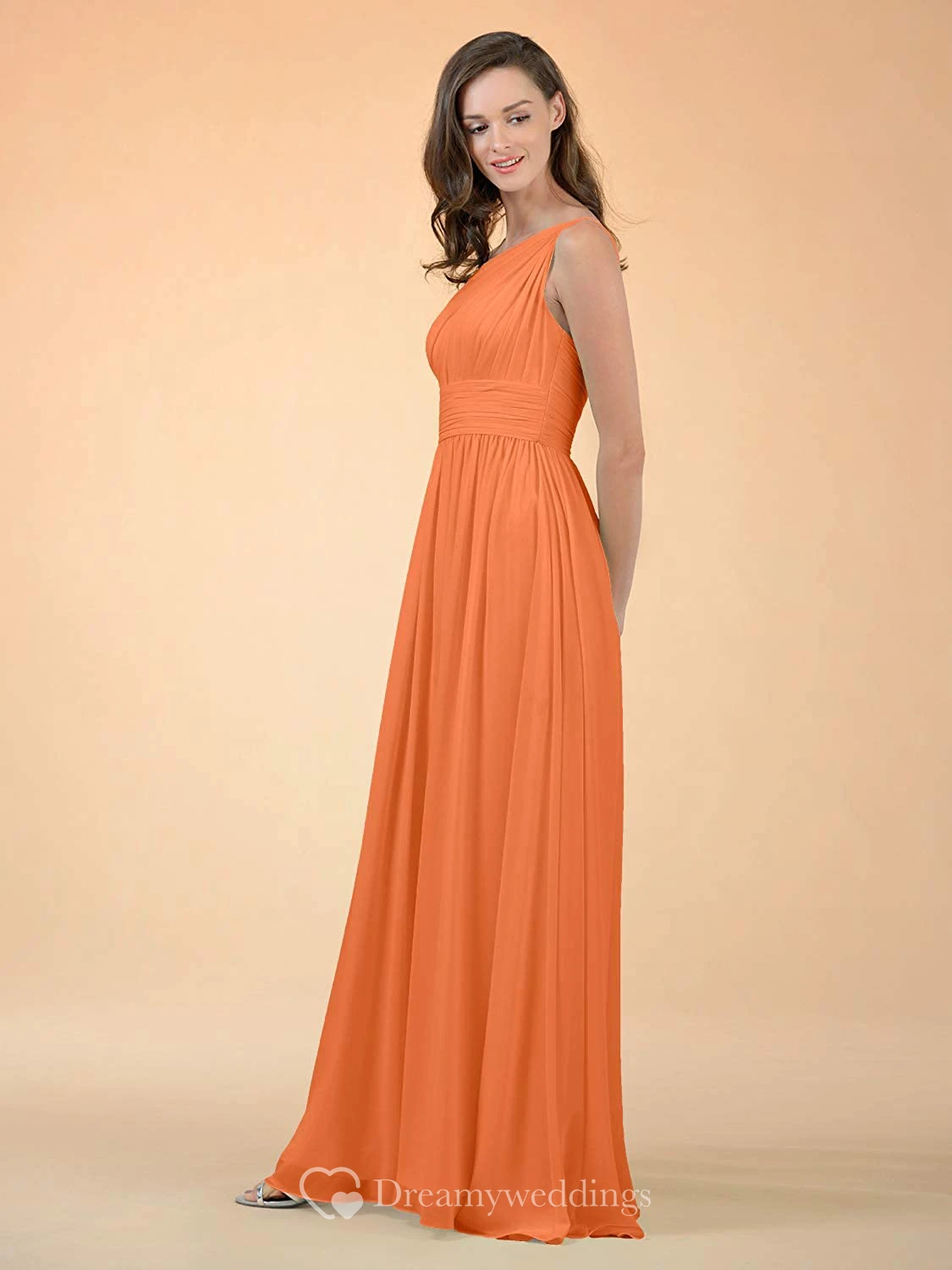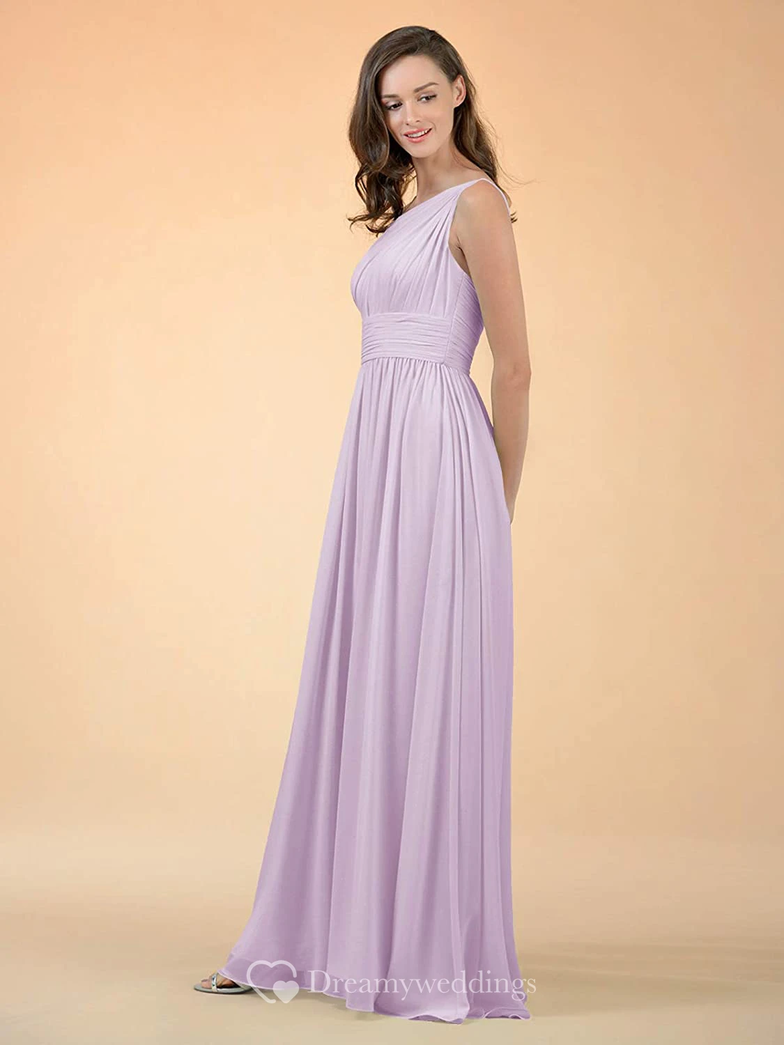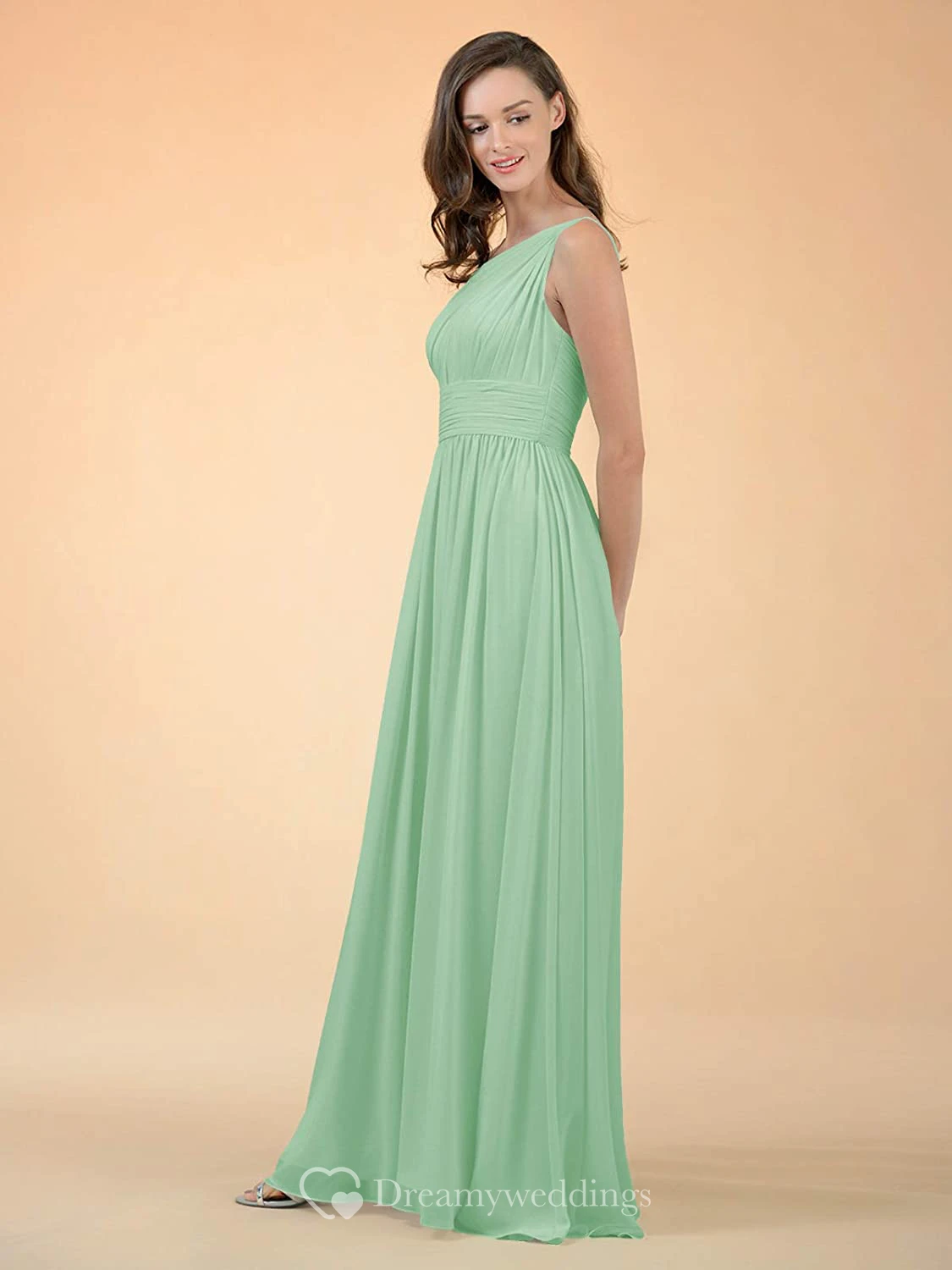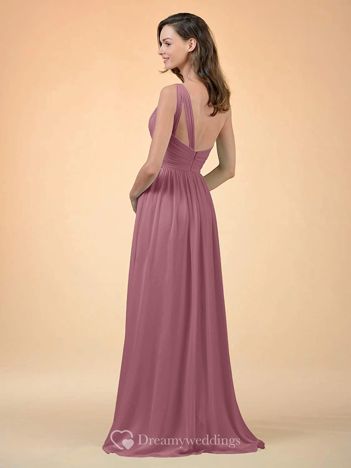 Casual One-shoulder A Line Sleeveless Floor-length Chiffon Bridesmaid Dress With Ruching