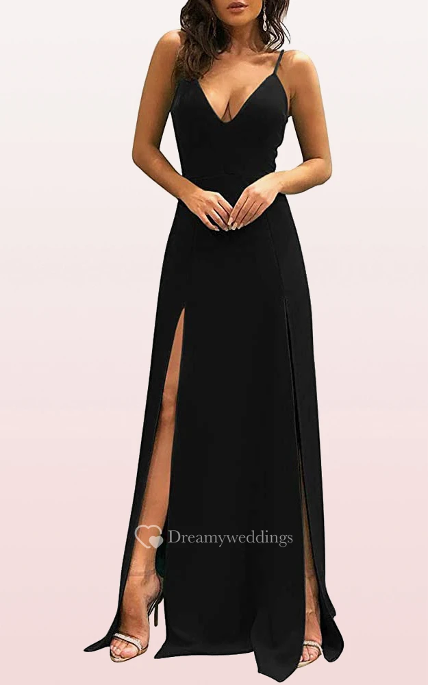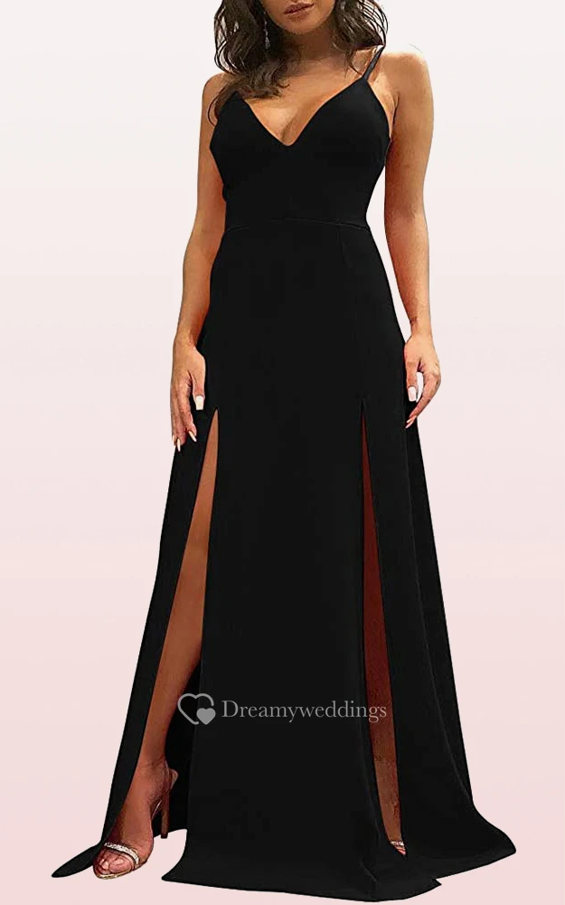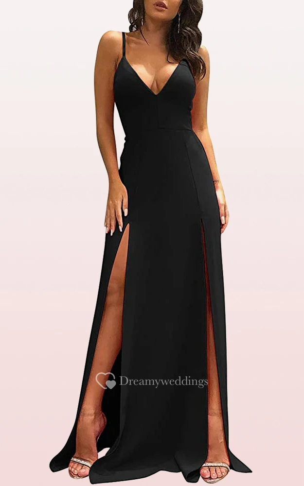 Casual Satin V-neck A Line Sleeveless Prom Dress With Split Front