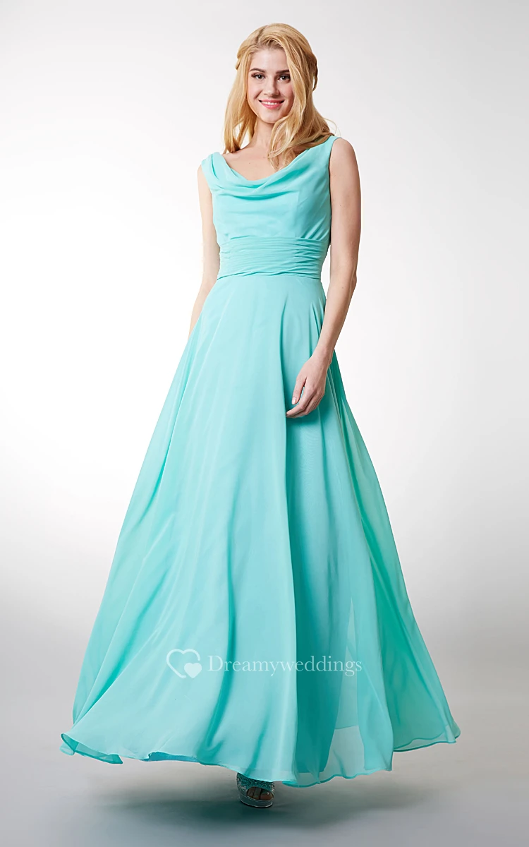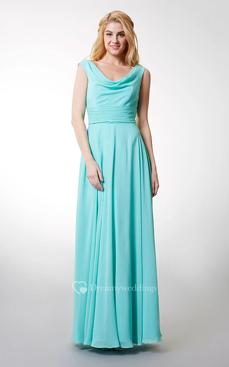 Charming Cowl Neck Sleeveless Long Chiffon Dress With V-neck
