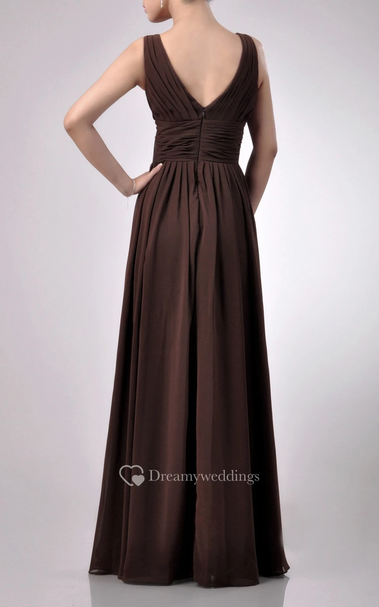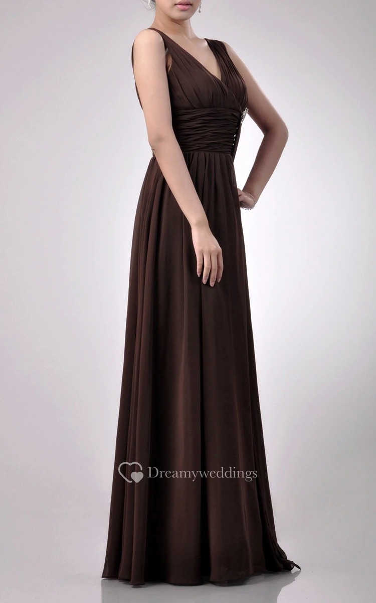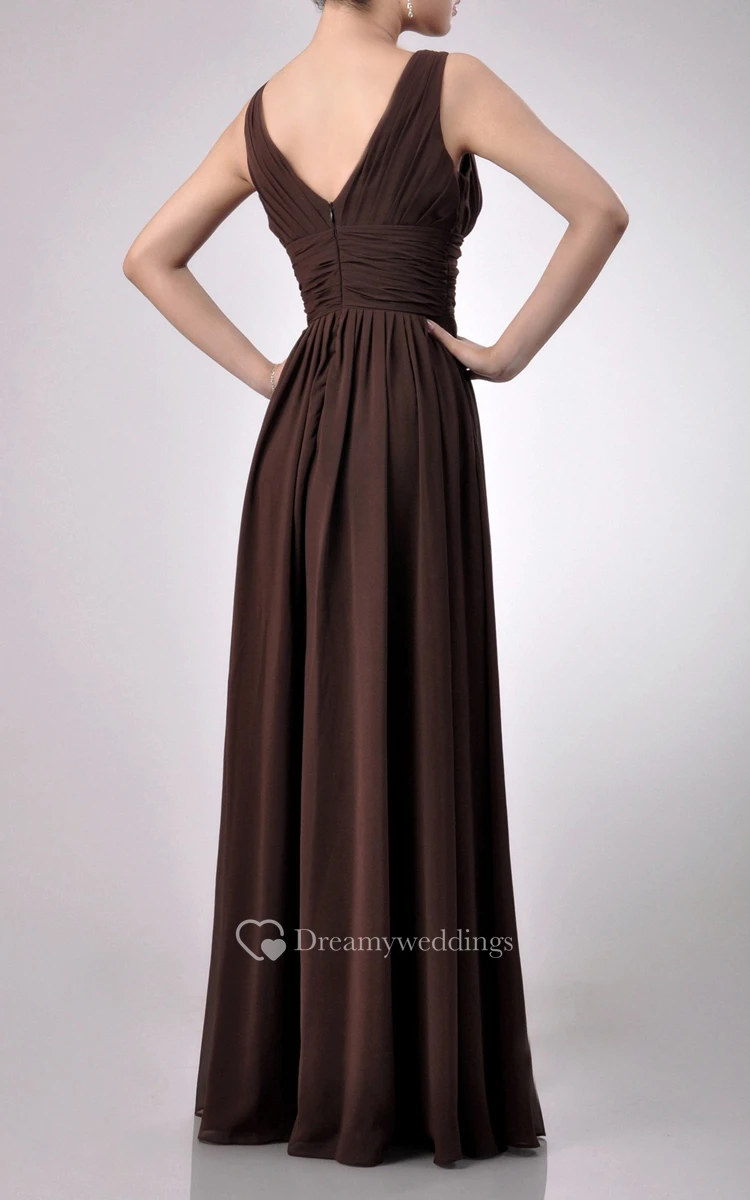 Charming Floor-length V-Neckline Empire Chiffon Bridesmaid Dress With Watteau Train
