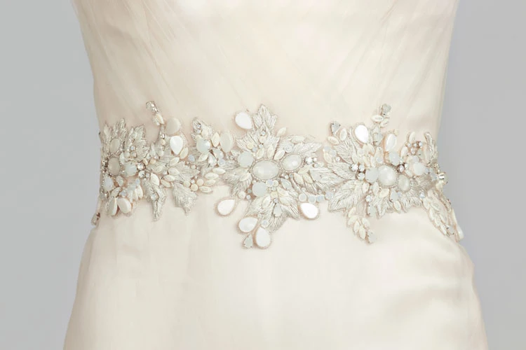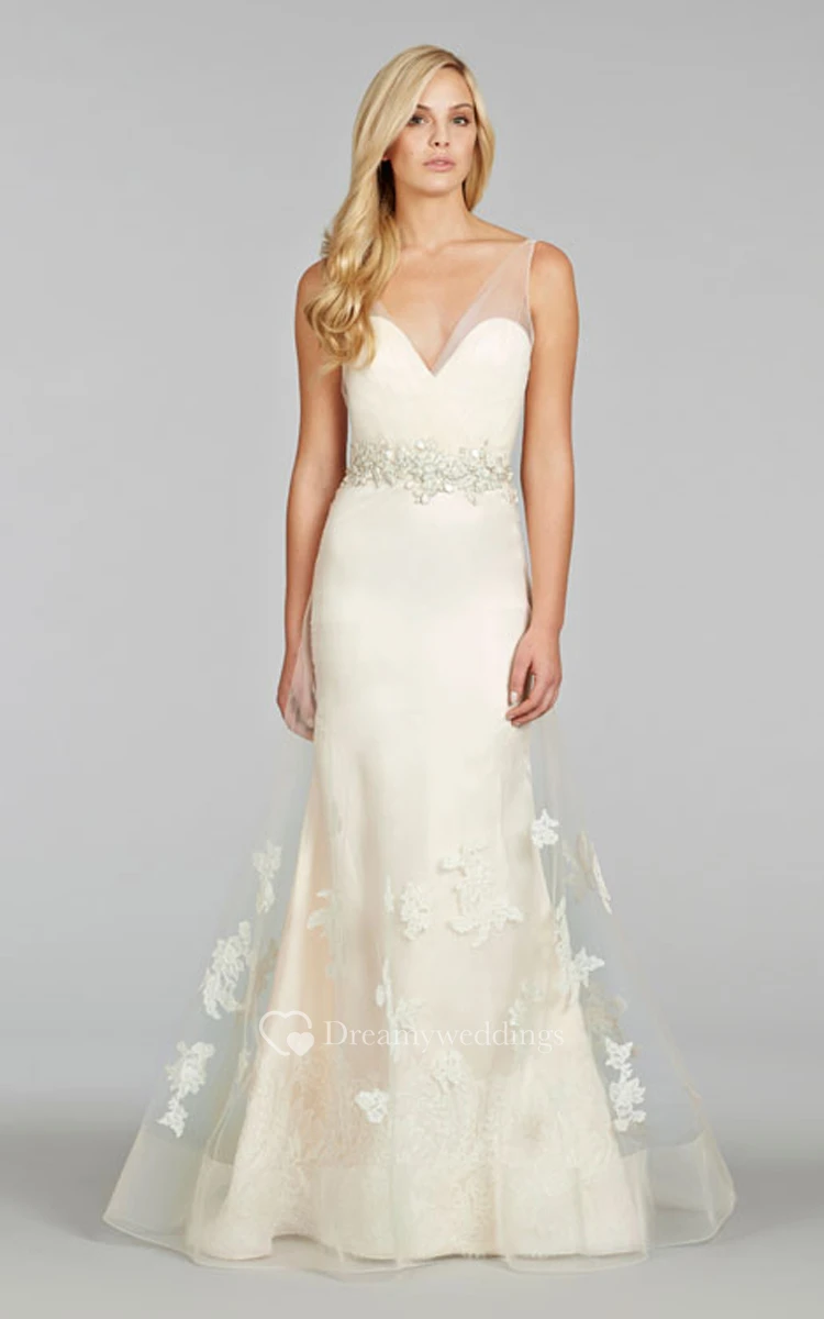 Charming V-Neck Draped Bodice Satin Organza Gown With Crystal Beaded Waistline