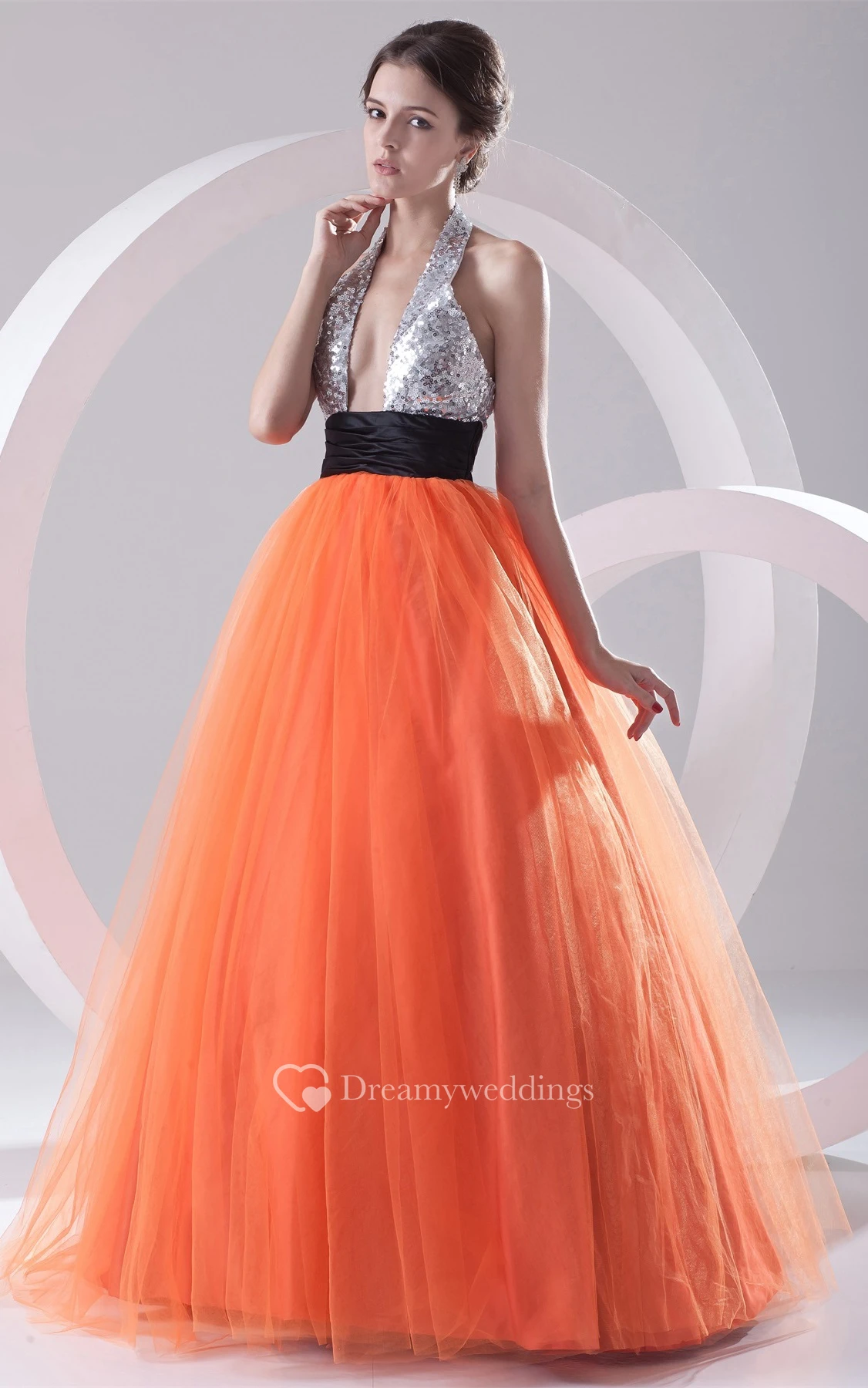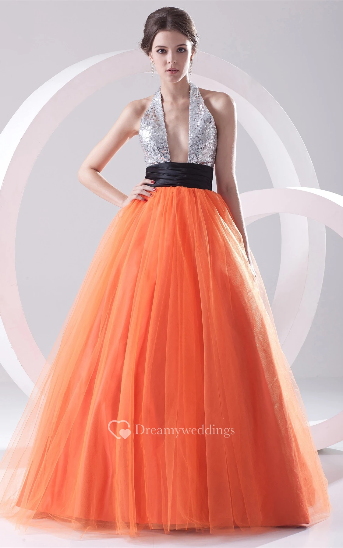 Chic A-Line Sleeveless Ball-Gown With Sequined Top