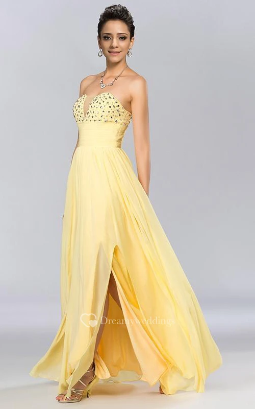 Chic A-line Strapless Beadings Floor-Length Prom Dress