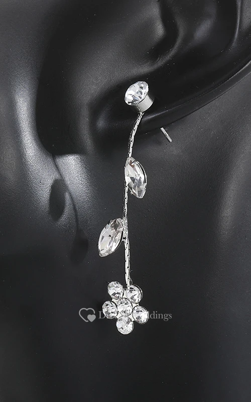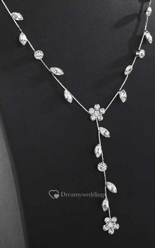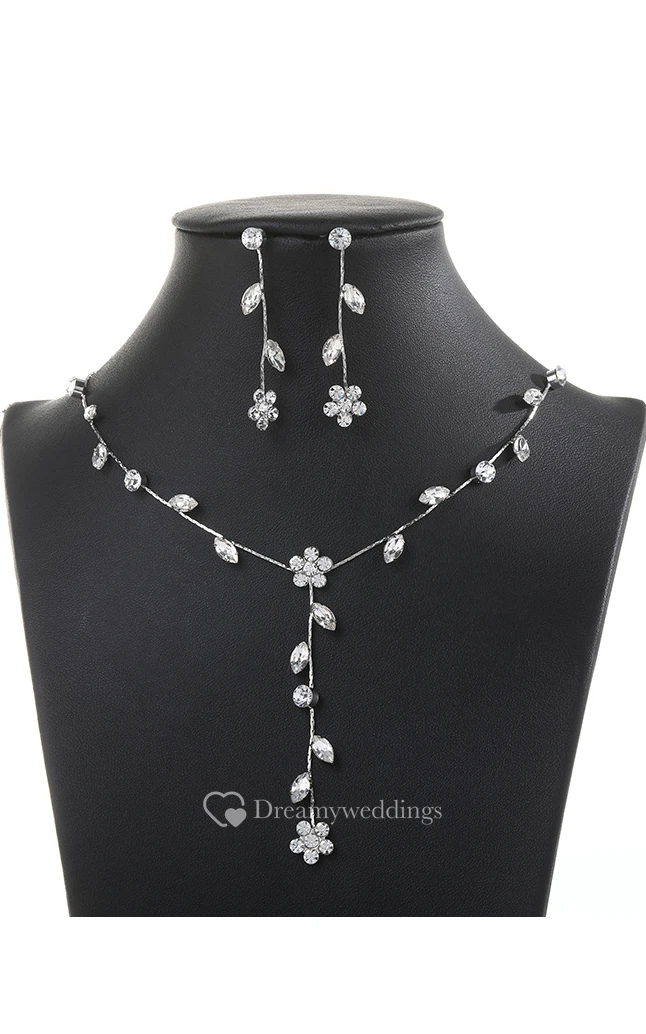 Chic Rhinestone Leaves and Flowers Design Necklace and Earrings Bridal Jewelry Set