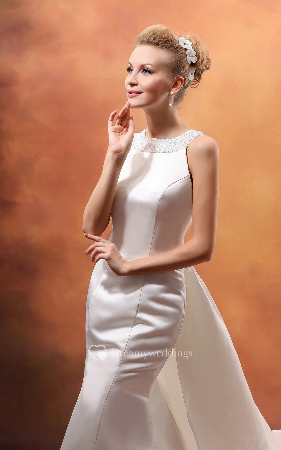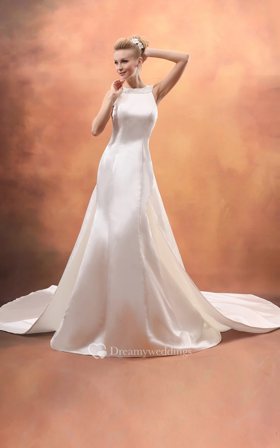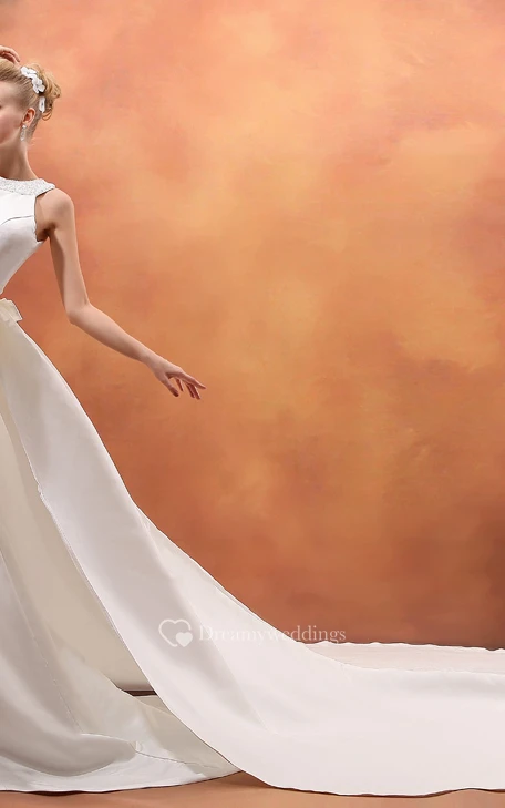 Chic Satin Dress With Beaded Neckline and Watteau Train