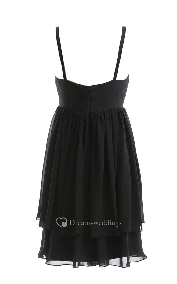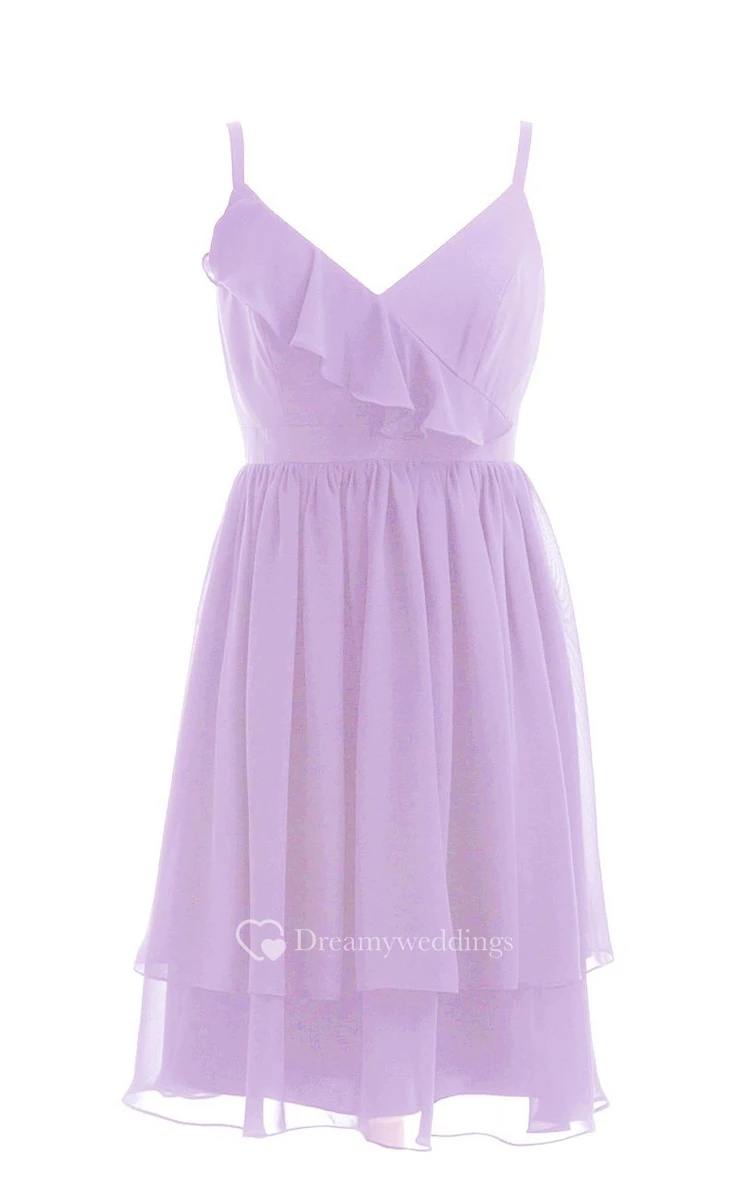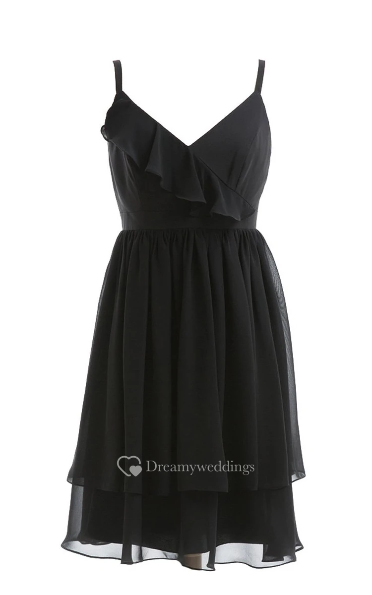Chic Spaghetti Straps V-neck Short Dress With Tieres
