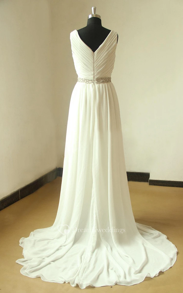 Chiffon Lace Weddig Dress With Beading Sash Ribbon