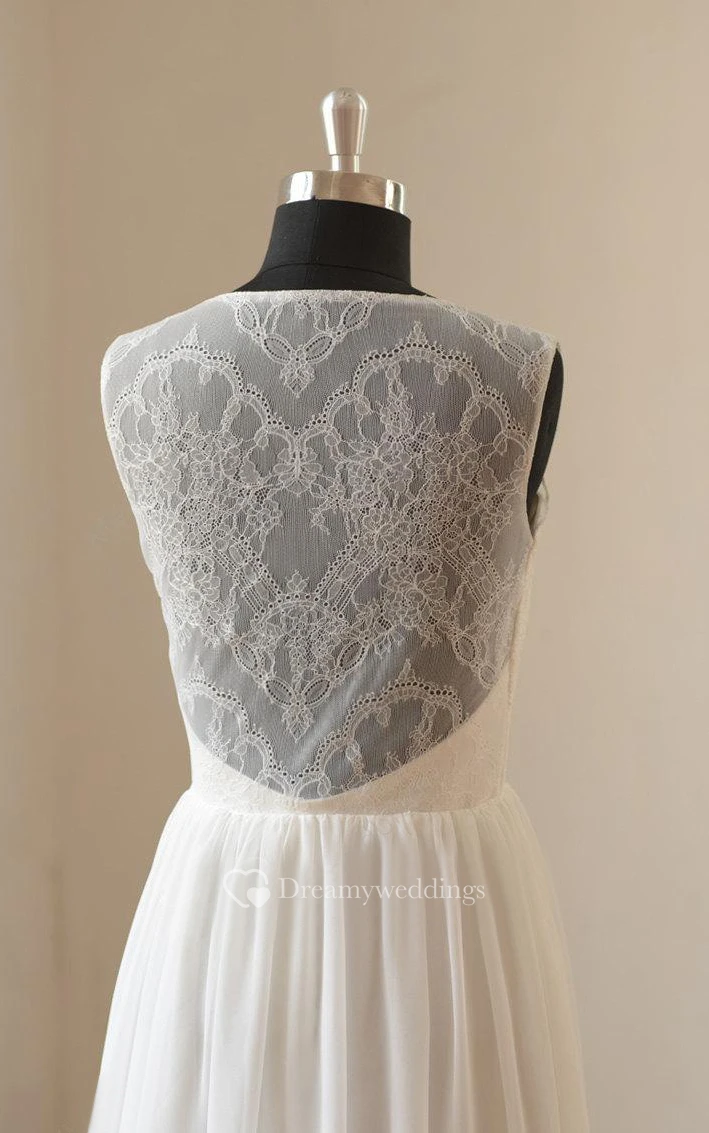 Chiffon A-Line Sleeveless V-Neck Dress With Illusion Back