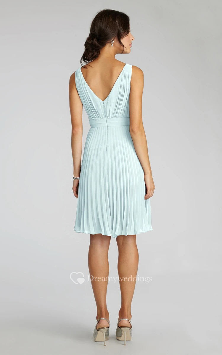 Chiffon A-Line Sleeveless V-Neck Dress With Pleats